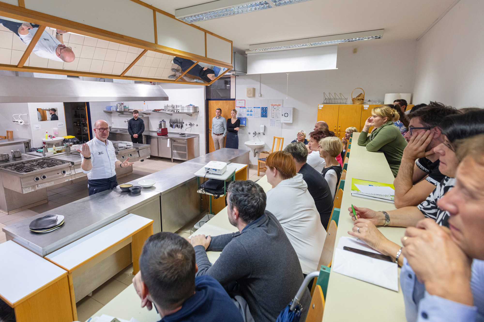 Drugi del je bil praktično obarvan – udeleženci so se udeležili delavnic, kjer so strokovnjaki prikazali pripravo okusnih jedi iz lokalnih, sezonskih in ekoloških sestavin ter delili svoje izkušnje o tem, kako take jedi približati otrokom in dijakom.