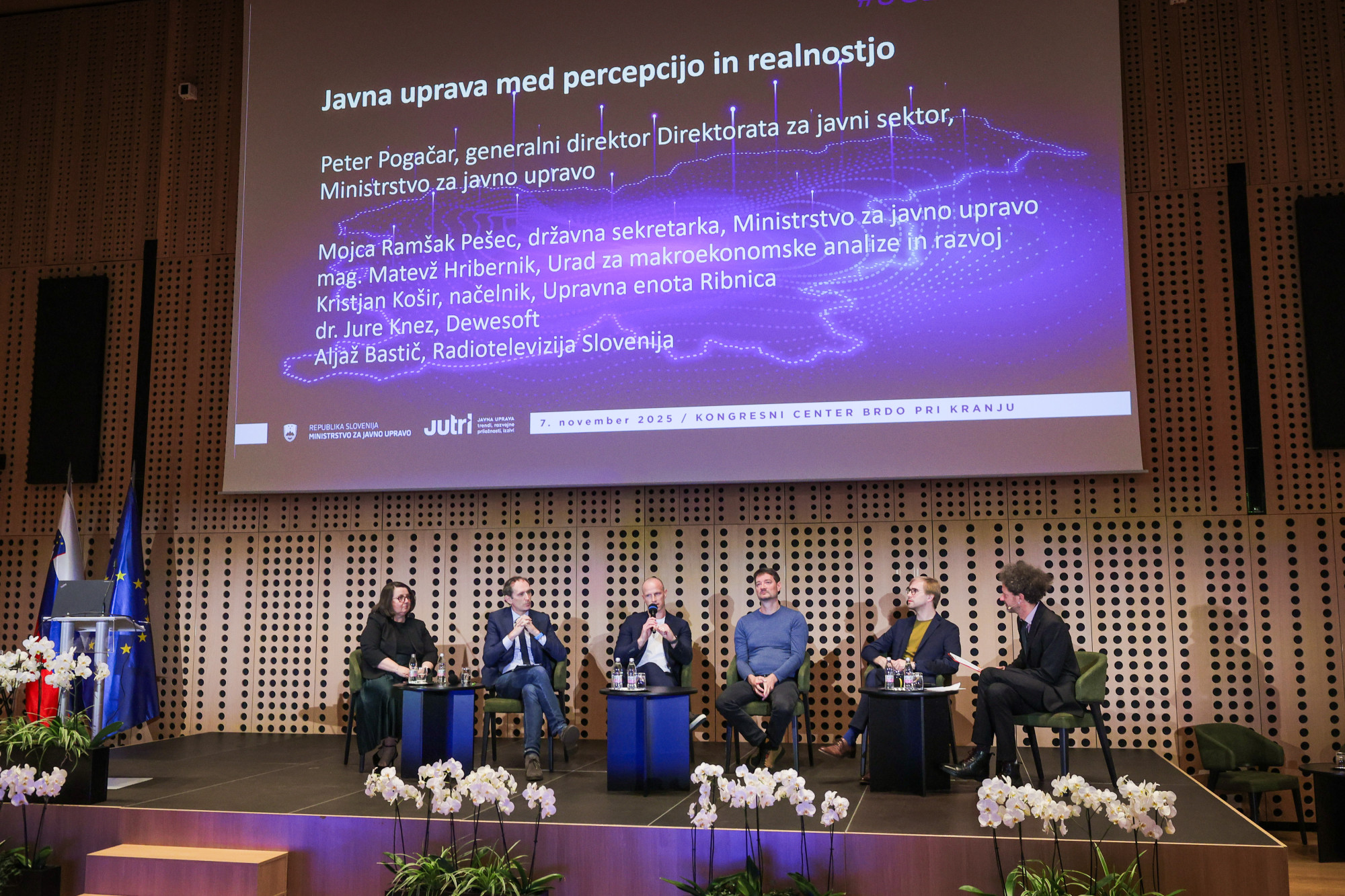 V prvem panelu z naslovom Javna uprava med percepcijo in realnostjo so udeleženci razpravljali o razlogih za razkorak med notranjim delovanjem sistema in njegovo podobo v javnosti. Uvodni govorec Peter Pogačar je predstavil ključne kazalnike delovanja javne uprave z vidika ugleda, zaupanja javnosti in avtonomije, medtem ko so v panelni razpravi sodelovali državna sekretarka Mojca Ramšak Pešec, podjetnik dr. Jure Knez, načelnik upravne enote Kristjan Košir, režiser Aljaž Bastič in ekonomist Matevž Hribernik. »Javna uprava je eden ključnih stebrov delovanja družbe. Da lahko ljudem učinkovito in strokovno služimo, moramo zgraditi in ohranjati zaupanje. Rezultati zadnjih raziskav Organizacije za gospodarsko sodelovanje in razvoj (OECD) kažejo, da je zadovoljstvo uporabnikov s strokovnostjo uradnikov v Sloveniji najvišje med primerjanimi državami, kar potrjuje, da znamo delati dobro in odgovorno. Naša naloga pa je, da to zaupanje ne samo upravičujemo še naprej, ampak še poglabljamo,« je povedal Pogačar.