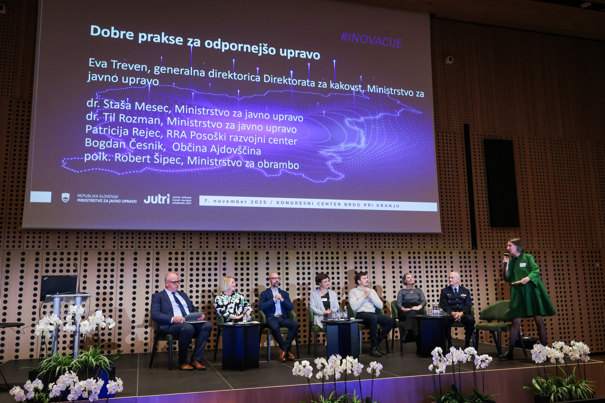 Tretji del konference, poimenovan Dobre prakse za odpornejšo upravo, je predstavil konkretne primere inovacij, dobrih praks in izboljšav iz različnih delov javnega sektorja. Uvodoma je generalna direktorica Direktorata za kakovost Eva Treven povedala, da se v javni upravi vsak dan odvija veliko zgodb uspeha: inovativnih rešitev, izboljšav in dobrih praks, ki pa pogosto ostanejo skrite znotraj posameznih organizacij. »Naša naloga je, da jih prepoznamo in omogočimo, da zaživijo širše. Le tako lahko gradimo javno upravo, ki se razvija in z zaupanjem gleda v jutri.« Ministrstvo za javno upravo je med drugim v ta namen vzpostavilo stičišče za oblikovanje politik. »V njem resorju pomagamo oblikovati boljše politike. To je takšne, ki že v najzgodnejšo fazo oblikovanja vključujejo vse ključne deležnike, temeljijo na podatkih in analizah, obenem pa so tudi testirane, še preden so implementirane v praksi,« je pojasnil vodja Sektorja za kakovost predpisov in razvojno načrtovanje dr. Til Rozman.