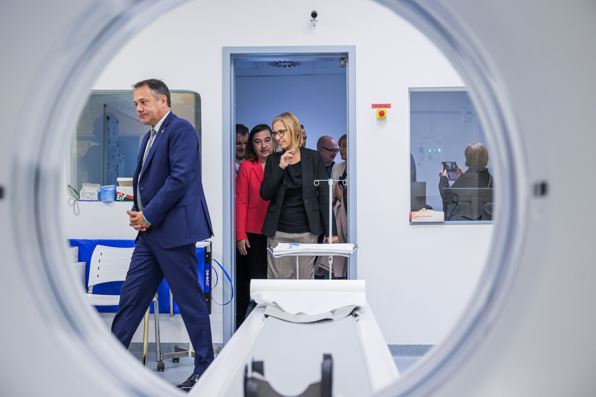 Ministrica za zdravje dr. Valentina Prevolnik Rupel in premier dr. Robert Golob z direktorjem bolnice Dimitrijem Klančičem na ogledu Splošne bolnišnice dr. Franca Derganca v Novi Gorici | Avtor: Ministrstvo za zdravje