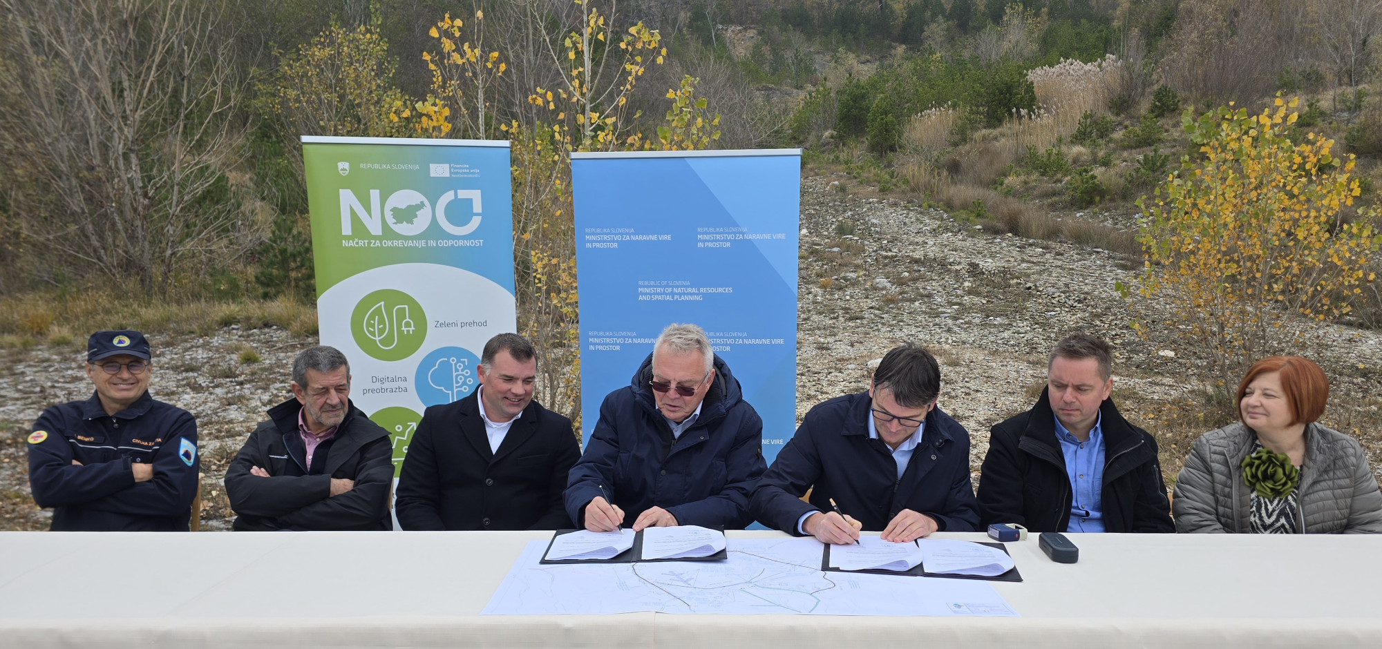 Podpis pogodbe za izvedbo gradbenih del za Ureditev odvodnje hudourniških pritokov v povirnem delu potoka Grajšek - Slano Blato | Avtor: Ministrstvo za naravne vire in prostor