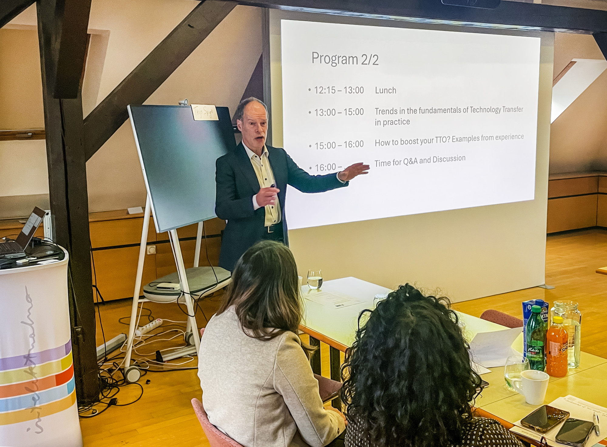 Predavanje je izvedel dr. Thijs Spigt, nekdanji direktor Nizozemskega patentnega urada in nekdanji vodja tehnološko-prenosne pisarne Erasmus MC v Rotterdamu. Na podlagi svojih izkušenj s področja prenosa tehnologij in vrednotenja intelektualne lastnine je predstavil praktične primere iz mednarodnega okolja.