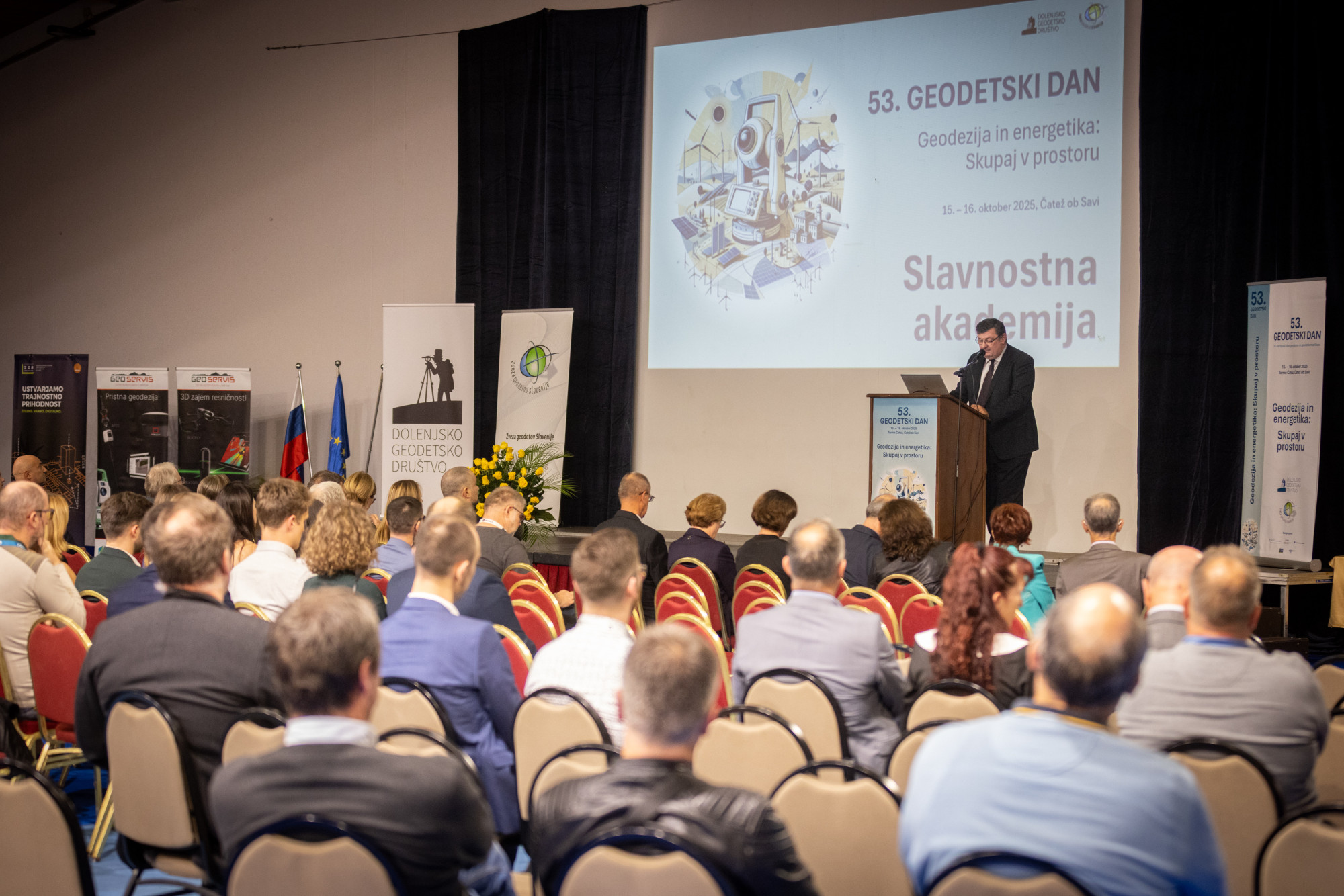 Slavnostno akademijo 53. geodetskega dne je z nagovorom odprl Tomaž Petek, generalni direktor Geodetske uprave, ki je poudaril, da »zanesljivi prostorski podatki in kakovostni postopki niso cilj sami po sebi, temveč temelj za varne odločitve v javnem interesu – od urejanja prostora do energetskega prehoda«.