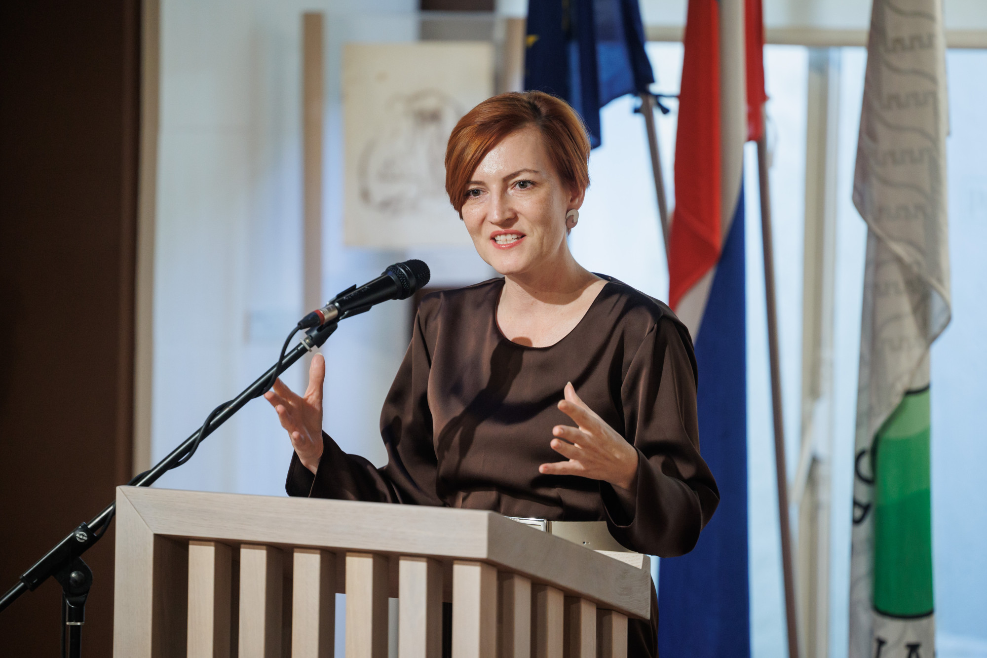 Ministrica dr. Asta Vrečko na odprtju prenovljene Pilonove galerije Ajdovščina