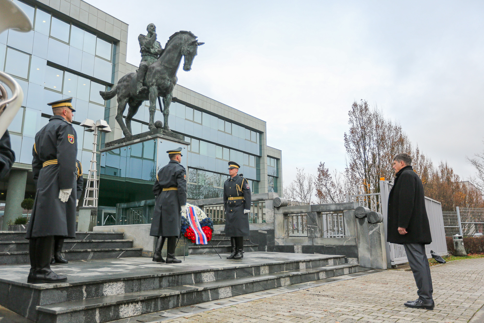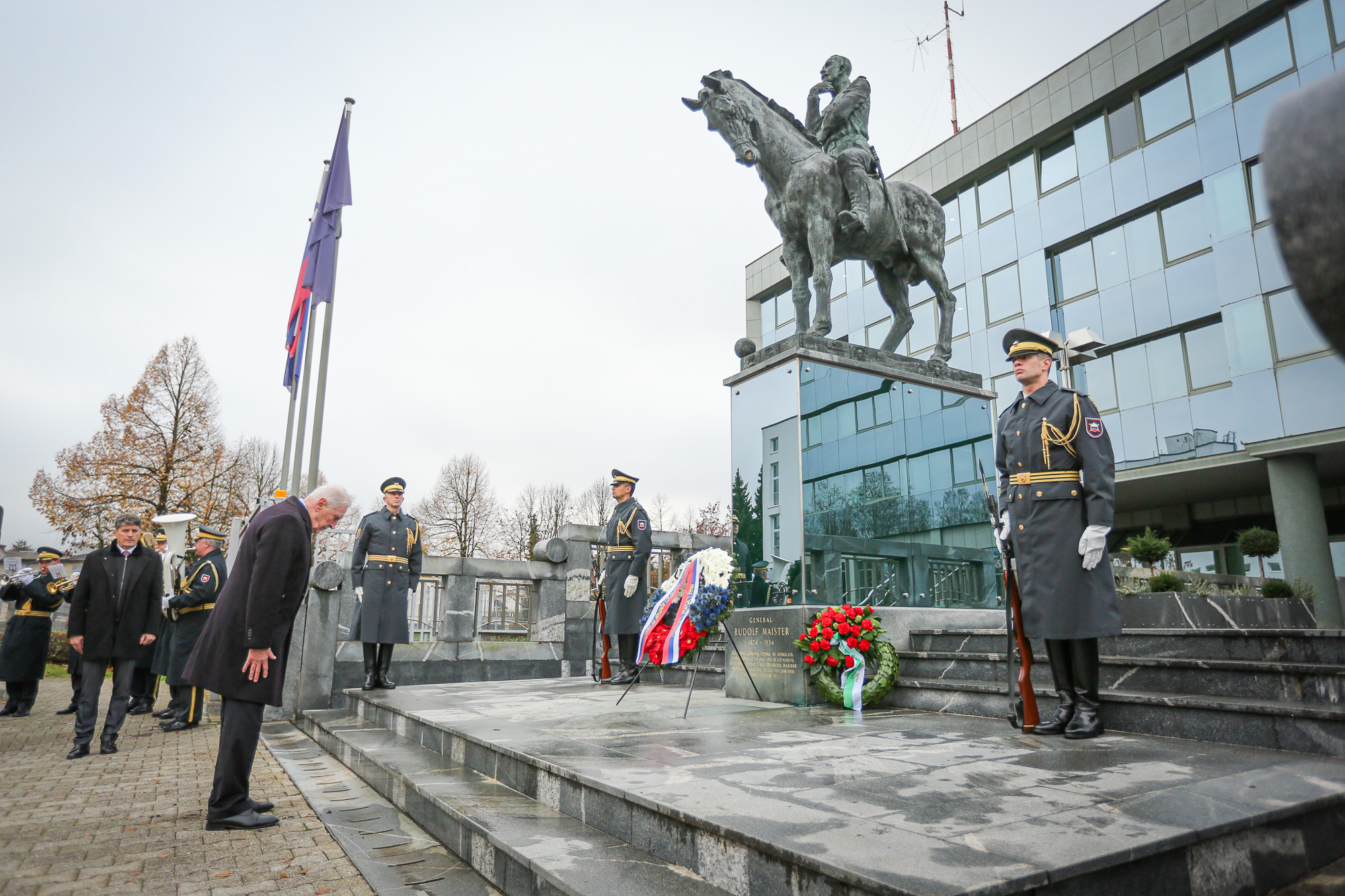 Danes je pred prihajajočim dnevom Rudolfa Maistra, ki ga obeležujemo 23. novembra, pred Ministrstvom za obrambo potekala slovesnost s polaganjem venca pred spomenikom generala Maistra | Avtor: Robert Cotič