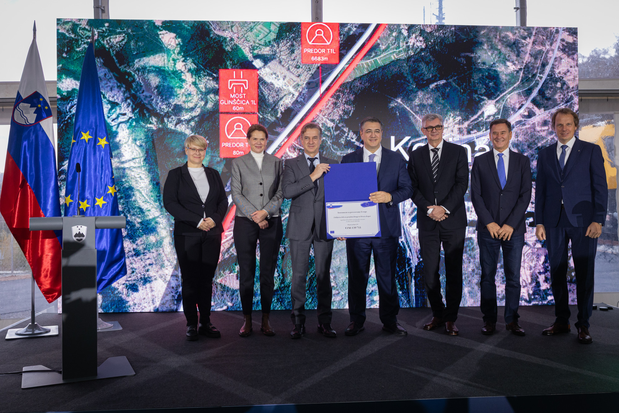 Na slovesnosti so zbrani obeležili dokončanje ključnih gradbenih objektov na Odseku 2 - petih predorov, dveh viaduktov in odprte trase - ter predajo del med gradbeno fazo in fazo železniških del.
