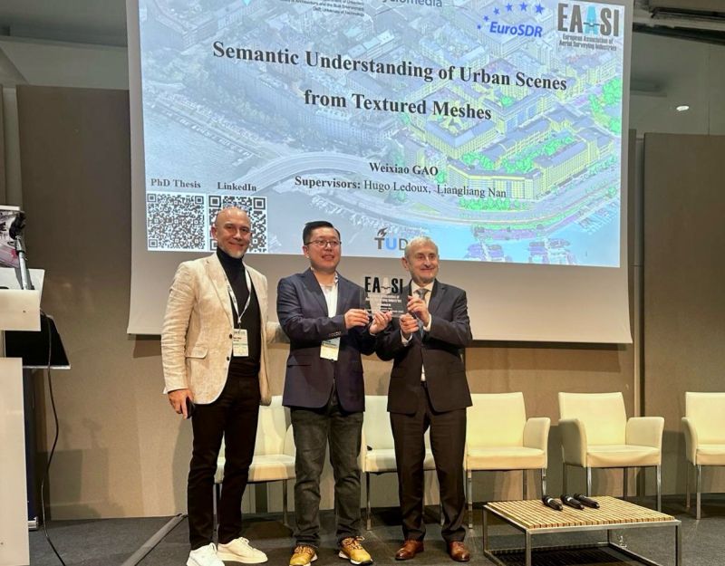 Ob zaključku prvega dne zasedanja je odhajajoči predsednik združenja EAASI Florian Romanowski podelil nagrado za izjemno diplomsko nalogo EAASI 2025. Prejel jo je dr. Weixiao Gaoju, ki je v svoji nalogi z naslovom »Semantično razumevanje urbanih scen iz teksturnih mrež, pokazal na izjemen občutek naslednje generacije strokovnjakov, da okrepijo povezavo med zračnim merjenjem in zdravim poslovnim razmišljanjem.