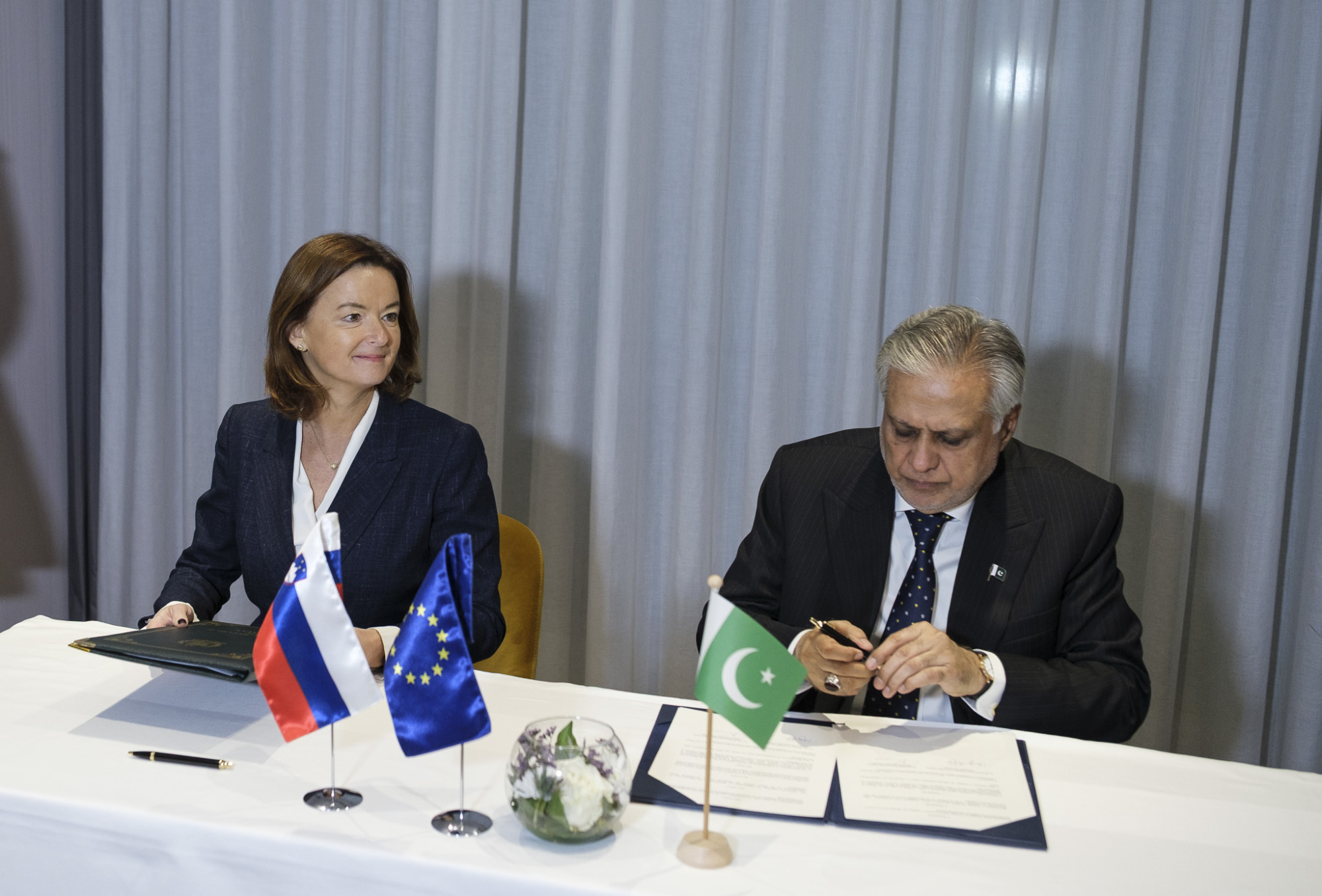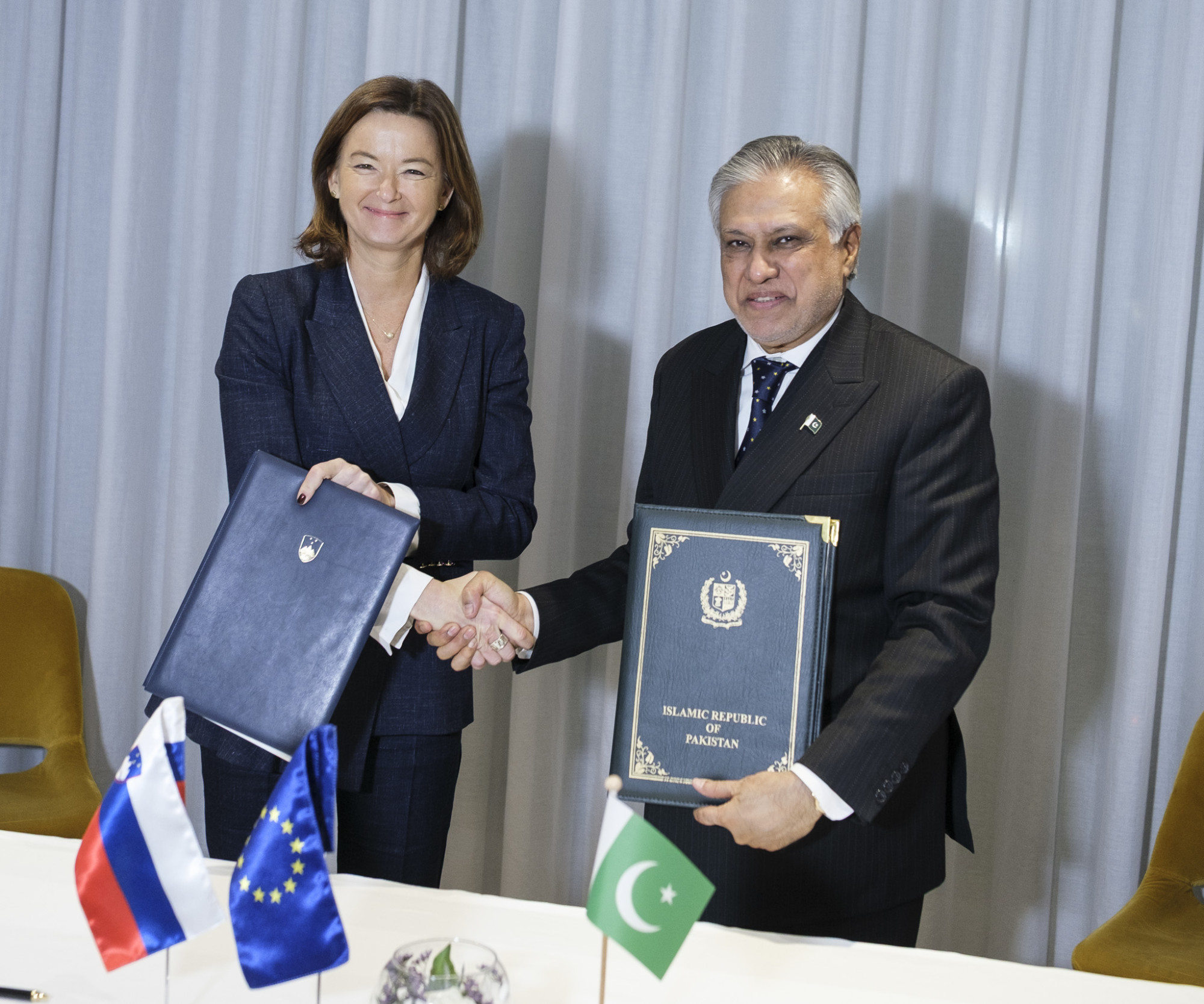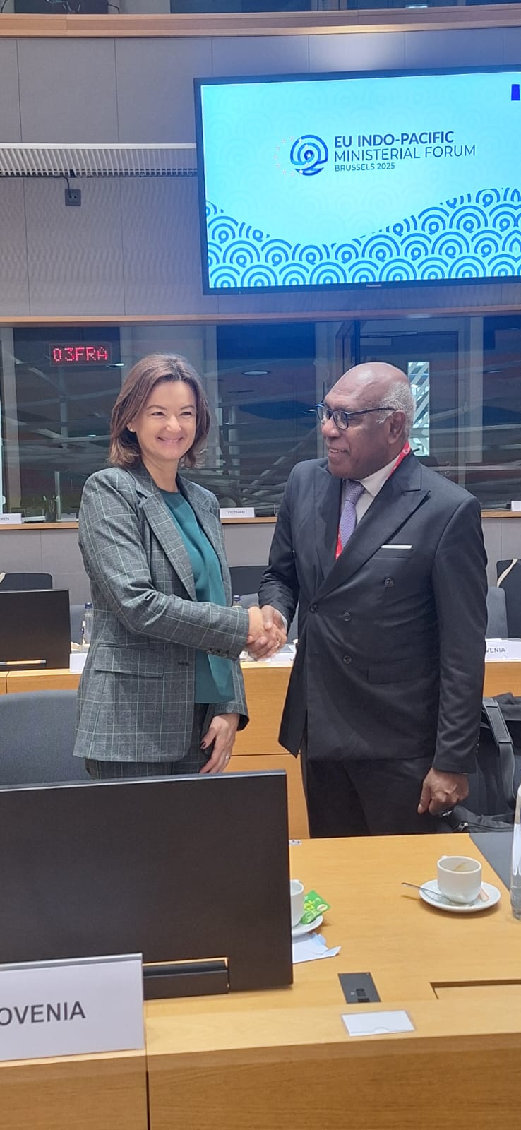 Ob robu udeležbe na ministrskem srečanju EU-Indopacifik je ministrica Fajon opravila tudi bilateralna srečanja z zunanjima ministroma Pakistana Mohammadom Ishaq Darom in Laosa Thongsavanhom Phomvihanem, z obema ministroma je podpisala tudi Memoranduma o razumevanju o dvostranskih posvetovanjih, ki predstavljata podlago za redni dialog o priložnostih za krepitev dvostranskega sodelovanja ter izmenjavo pogledov na regionalna in mednarodna vprašanja Po zaključku članstva Slovenije v Varnostnem svetu OZN konec tega leta bosta Slovenija in Pakistan s 1. januarjem 2026 sodelovali tudi v okviru Sveta ZN za človekove pravice.