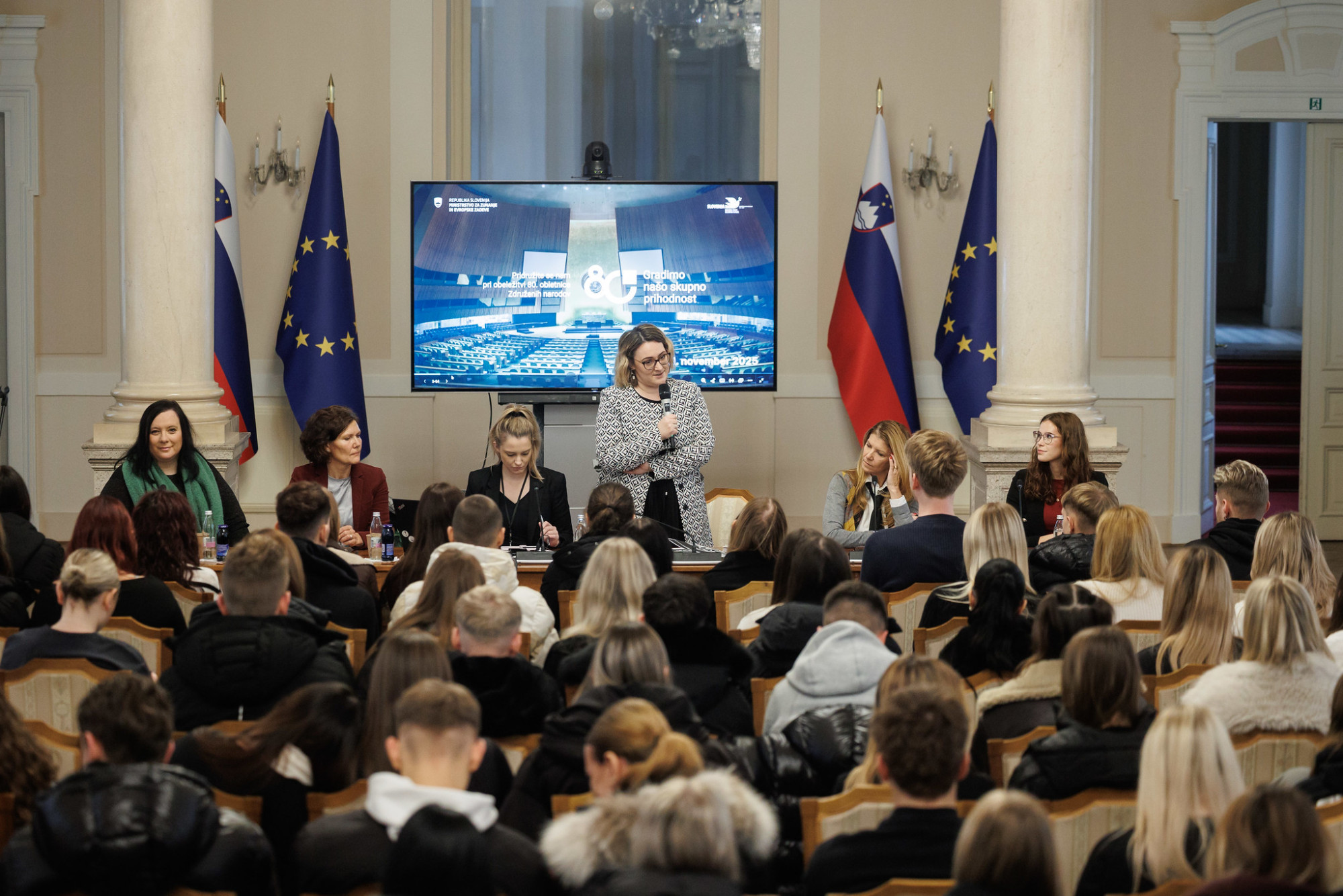 V nadaljevanju je dijakom delo ministrstva za zunanje in evropske zadeve predstavila državna sekretarka Neva Grašič. Mladim je spregovorila o pomembni vlogi Slovenije, ki je še do konca letošnjega leta nestalna članica Varnostnega sveta Združenih narodov, v decembru pa bo Varnostnemu svetu celo predsedovala. »V mesecu, ko predsedujemo Varnostnemu svetu, smo najpomembnejša država na svetu«, je še poudarila državna sekretarka in spomnila, da je prizadevanje za mir in varnost še kako pomembna tema, saj je trenutno v svetu aktivnih 55 konfliktov.