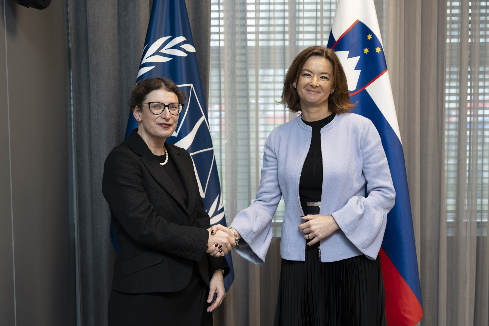 Ministrica Fajon je na srečanju s predsednico MKS Tomoko Akane in sodnim tajnikom Osvaldom Zavalom Gilerjem ponovno poudarila neomajno podporo Slovenije temu sodišču in zavezanost ohranitvi njegove neodvisnosti in odpornosti: "Obsojamo vmešavanje v delo sodišča, grožnje in sankcije, vključno s kibernetskimi napadi in morebitnimi nadaljnjimi ukrepi zoper sodišče. Takšni nedopustni pritiski na sodišče in osebje škodujejo delovanju tega sodišča v vseh situacijah, ki jih obravnava - v primeru Palestine, Ukrajine, Sudana, Libije, Srednjeafriške republike in drugih."