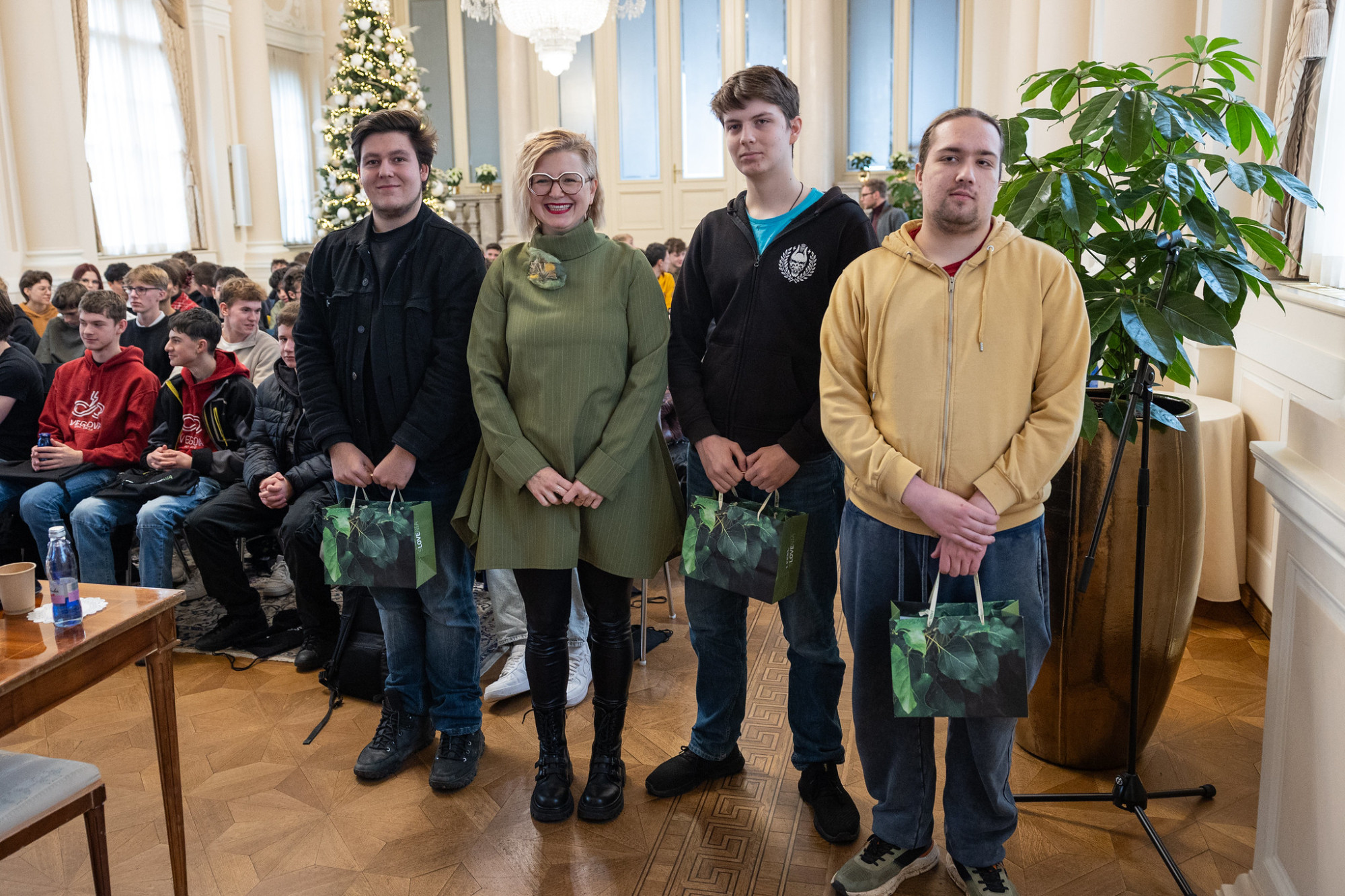 Prvi del obiska je potekal v praznično okrašeni Kristalni dvorani Predsedniške palače. Prostor, ki decembra gosti številne pomembne protokolarne dogodke, je s svojo svečano podobo hitro pritegnil pozornost dijakov. V takšnem ambientu so si najprej ogledali kratek predstavitveni video o vladi, nato pa prisluhnili uvodni predstavitvi gostiteljice z Ministrstva za vzgojo in izobraževanje.