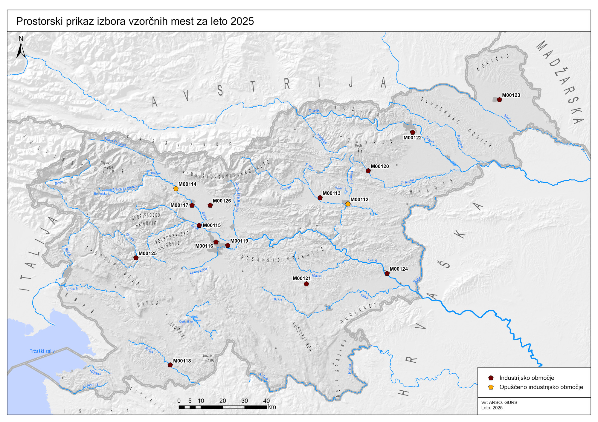 Agencija za okolje je v okviru Monitoringa kakovosti tal v letu 2025 odvzela vzorce tal na 15 vzorčnih mestih, od tega 13 na industrijskih območjih in 2 na opuščenih industrijskih območjih.