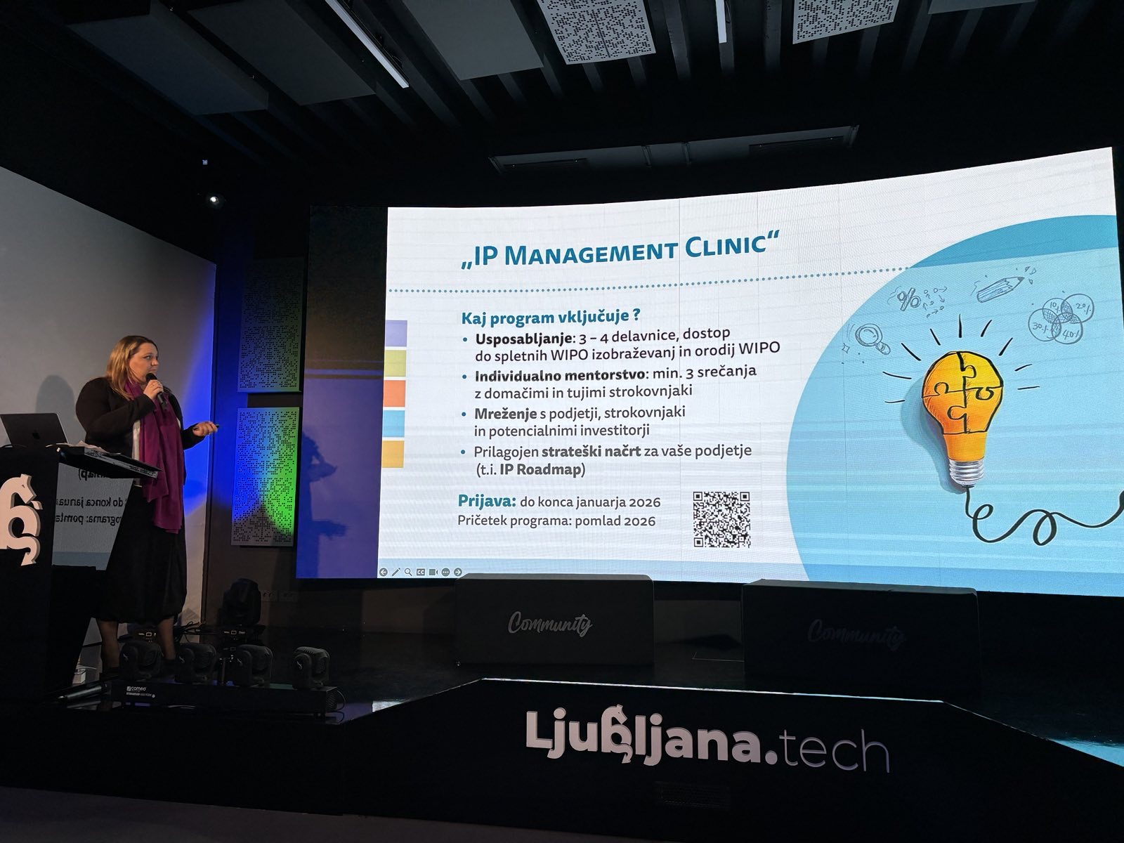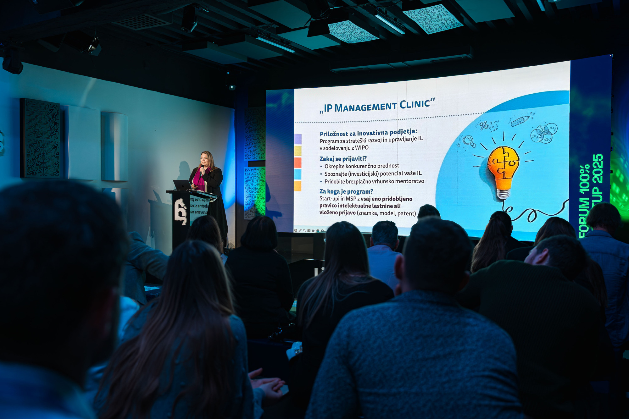 Program je Urad za intelektualno lastnino premierno predstavil na dogodku Forum 100% Start:up 2025, ki je potekal v tehnološkem centru LjubljanaTech. Dogodek so organizirali Tovarna podjemov (Start:up Slovenija) v soorganizaciji s Slovenskim podjetniškim skladom in Ministrstvom za gospodarstvo, turizem in šport. Na panelu so bile predstavljene ključne priložnosti in programi, ki bodo podjetnikom in bodočim podjetnikom na voljo v letu 2026 - priložnosti, ki jih podjetja ne smejo zamuditi. Predstavnica urada je sodelovala tudi na panelu o intelektualni lastnini v dobi umetne inteligence.