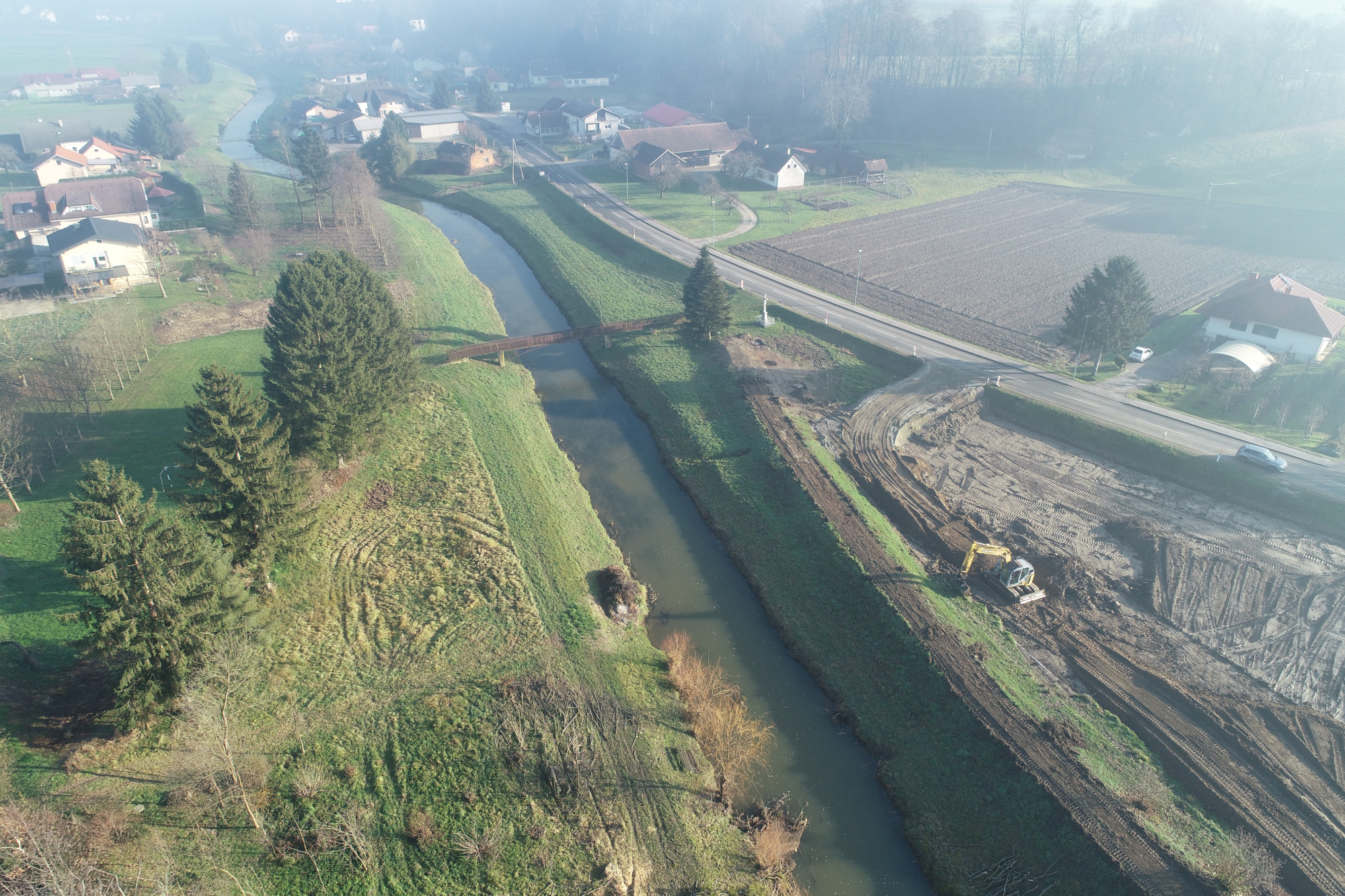 V začetku leta 2026 bomo objavili še zadnje naročilo za gradnjo protipoplavnih ukrepov na desnem bregu Mure. Gre za nadvišanje obstoječe ceste v dolžini nekaj več kot 500 m, ki jo bomo izvedli do sredine junija 2026.