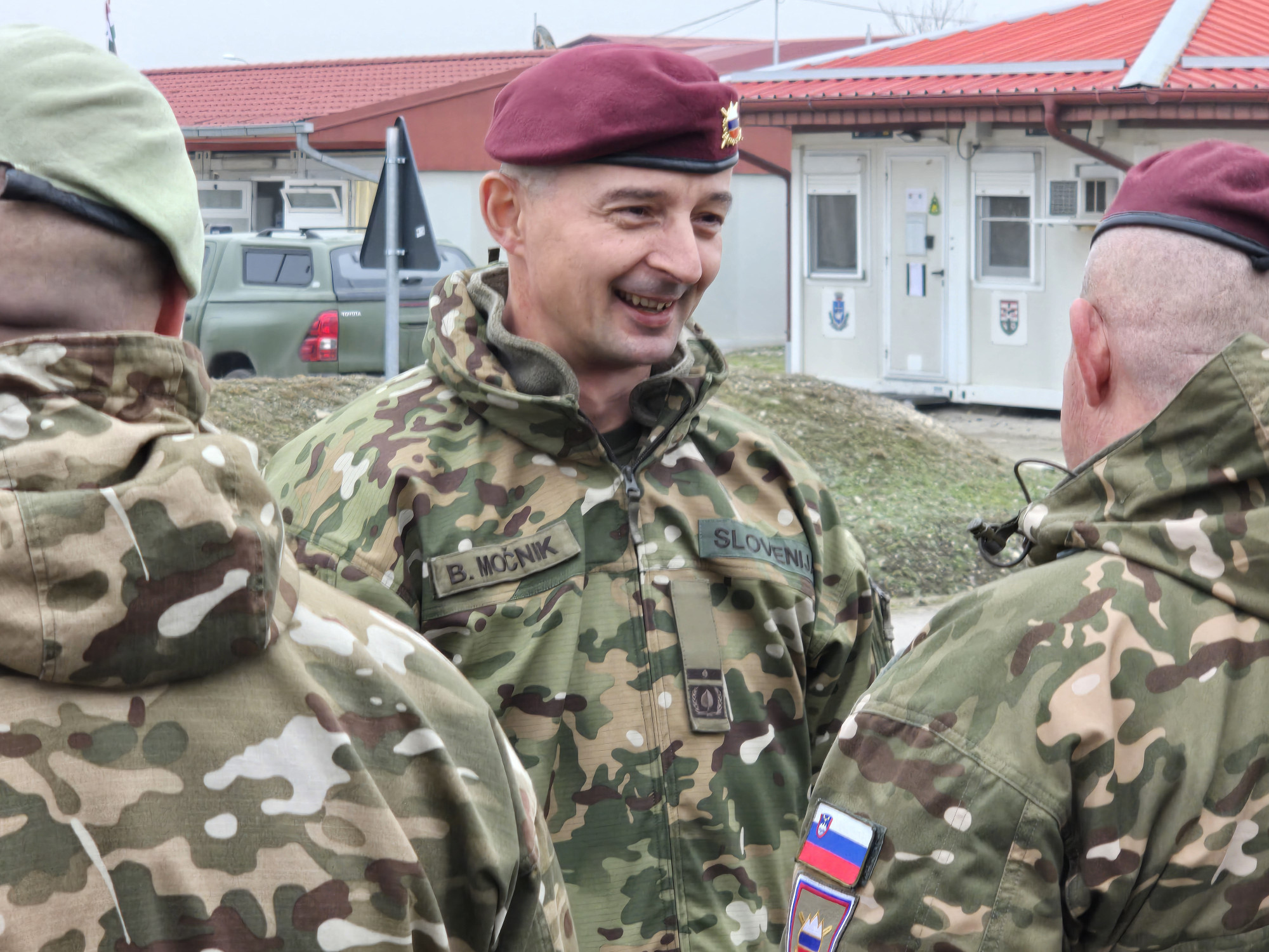 Minister za obrambo mag. Borut Sajovic je skupaj z načelnikom Generalštaba Slovenske vojske brigadirjem Boštjanom Močnikom pred prihajajočimi božično-novoletnimi prazniki obiskal pripadnice in pripadnike 52. slovenskega kontingenta Kfor. | Avtor: Ministrstvo za obrambo