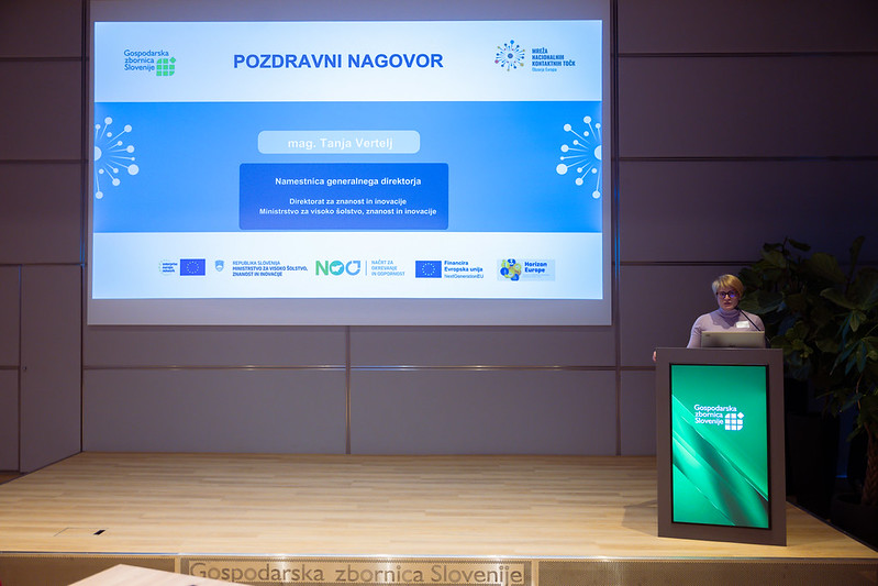 Udeležence je ob začetku nagovorila mag. Tanja Vertelj, namestnica generalnega direktorja Direktorata za znanost in inovacije, ki je poudarila pomen aktivnega vključevanja gospodarstva v evropske raziskovalne in inovacijske programe ter vlogo nacionalnih kontaktnih točk kot ključnega podpornega mehanizma.