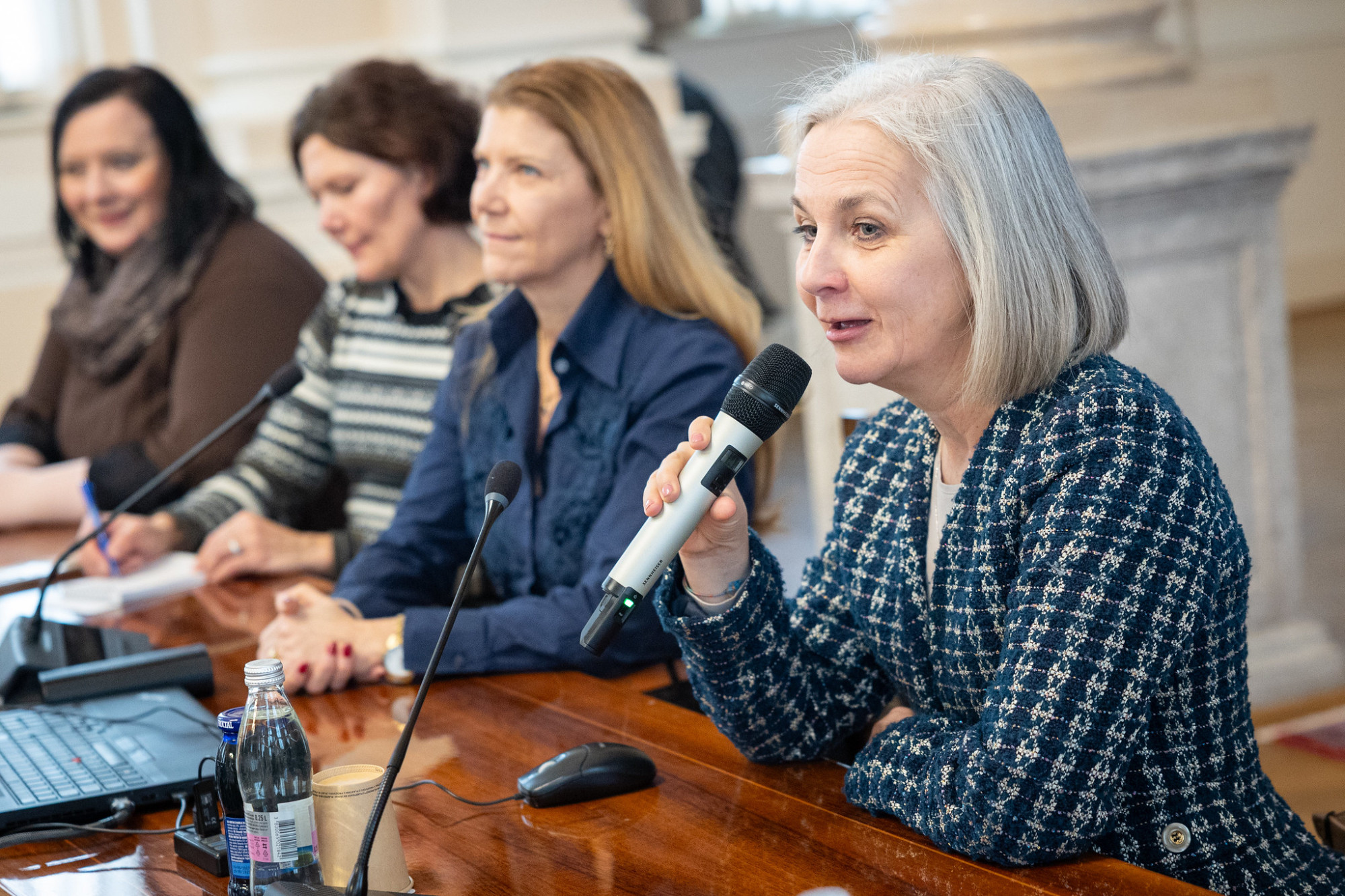 V drugem delu obiska so dijaki spoznali še delo Protokola Republike Slovenije in Urada vlade za komuniciranje. Predstavili smo jim predsedniško palačo in kristalno dvorano, kjer potekajo obiski dijakov, ter novinarsko središče, kjer se odvijajo vladne novinarske konference. Z dijaki smo izvedli tudi simulacijo novinarske konference, tako da so se lahko preizkusili v vlogi govorcev, novinarjev in tolmača v znakovni jezik.