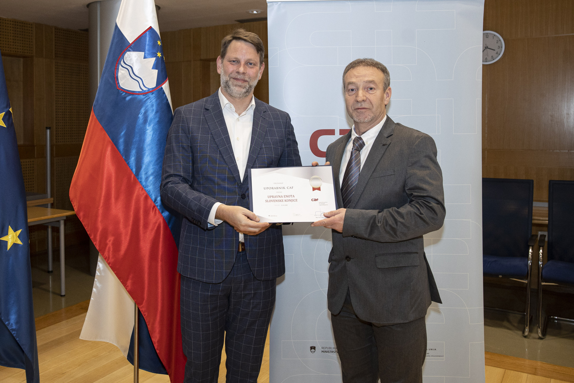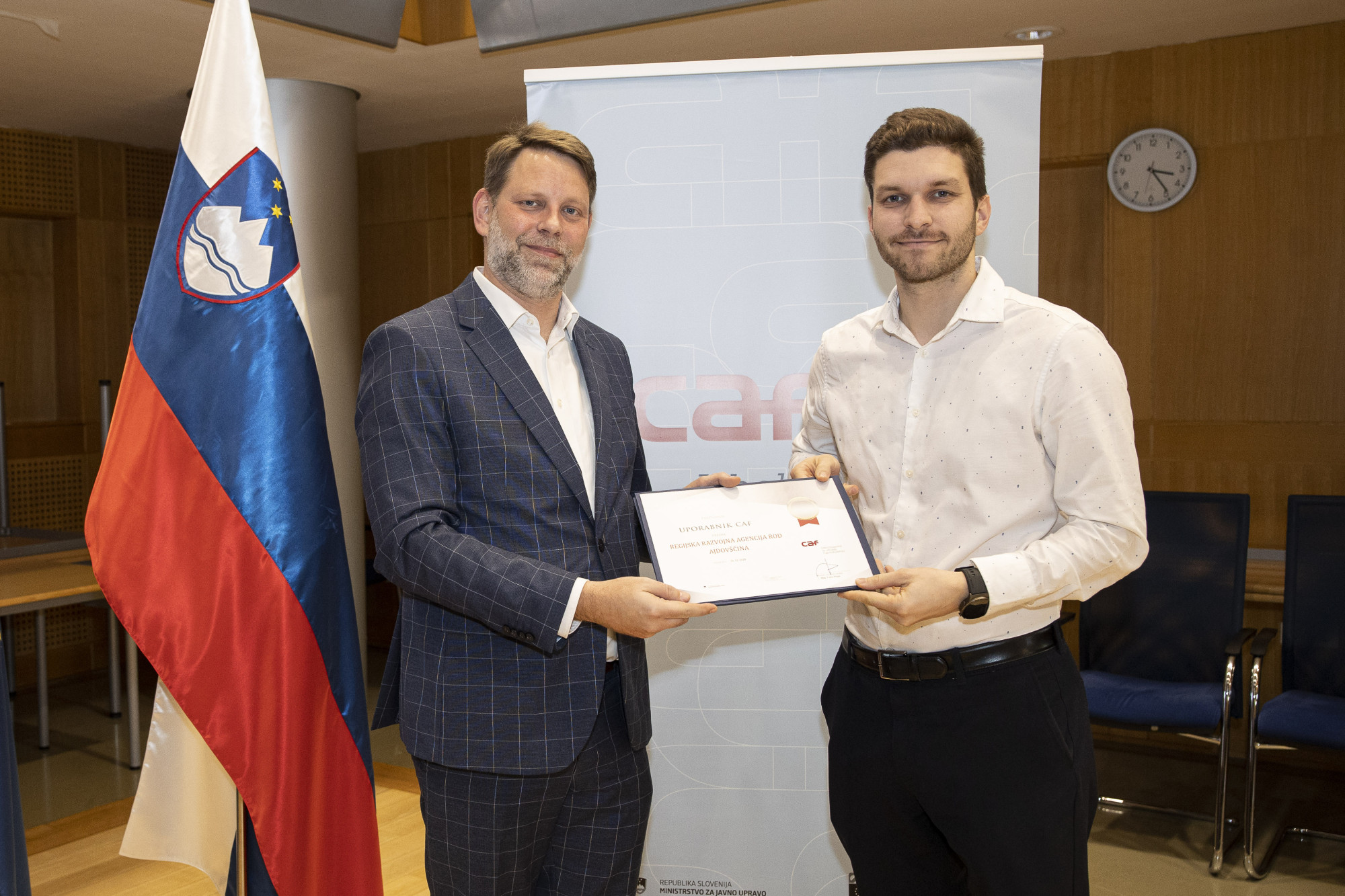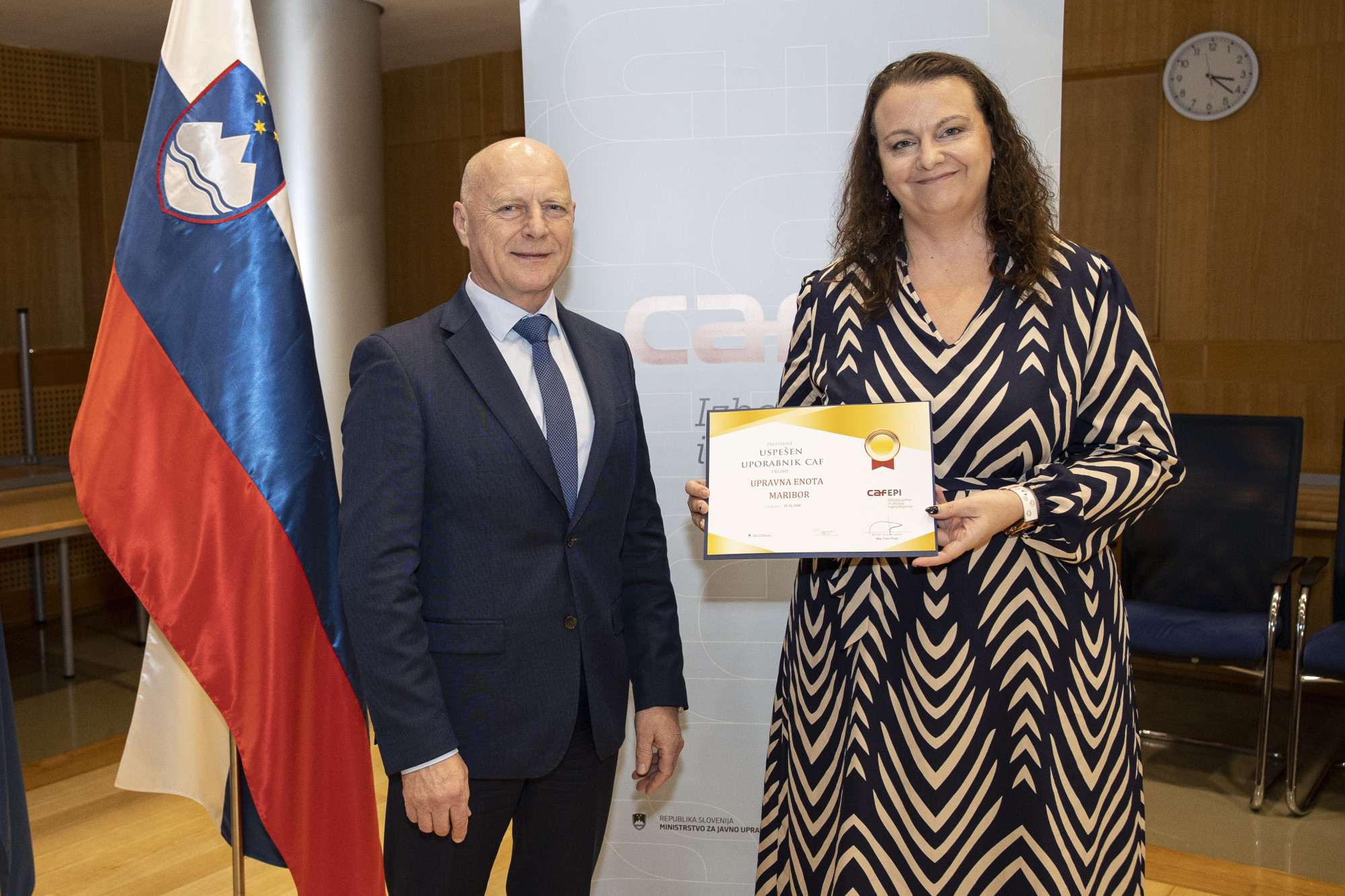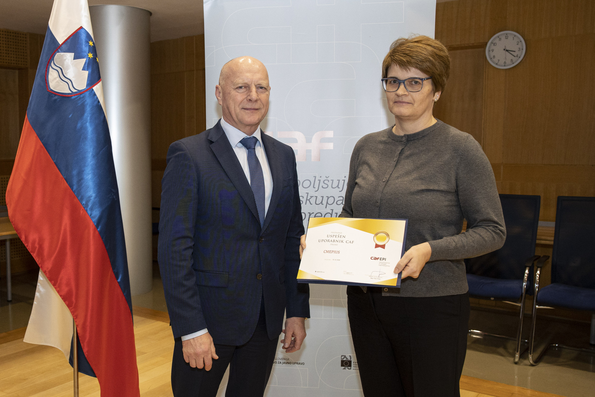 Priznanja Uspešen uporabnik CAF prejmejo organizacije, ki so uspešno prestale postopek zunanje povratne informacije CAF (CAF EPI). Ta predstavlja nadgradnjo samoocene, saj vključuje zunanjo presojo s strani usposobljenih ocenjevalcev ter poglobljen strokovni dialog z vodstvom in zaposlenimi. Za leto 2025 so z rok ministra to priznanje prejele tri organizacije: Ministrstvo za notranje zadeve, Center RS za mobilnost in evropske programe izobraževanja in usposabljanja (CMEPIUS) ter Upravna enota Maribor.