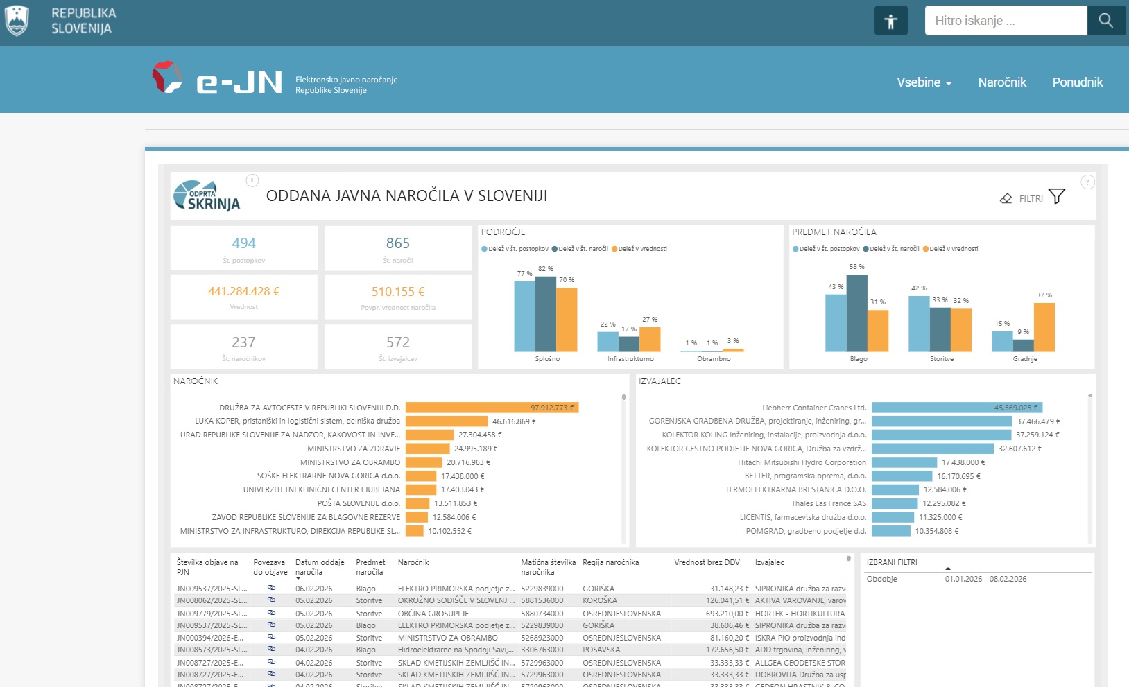 S tem smo zagotovili celovito, neposredno in posodobljeno objavo podatkov o oddanih javnih naročilih v realnem času (vidna so naročila, ki so bila oddana do prejšnjega dne).