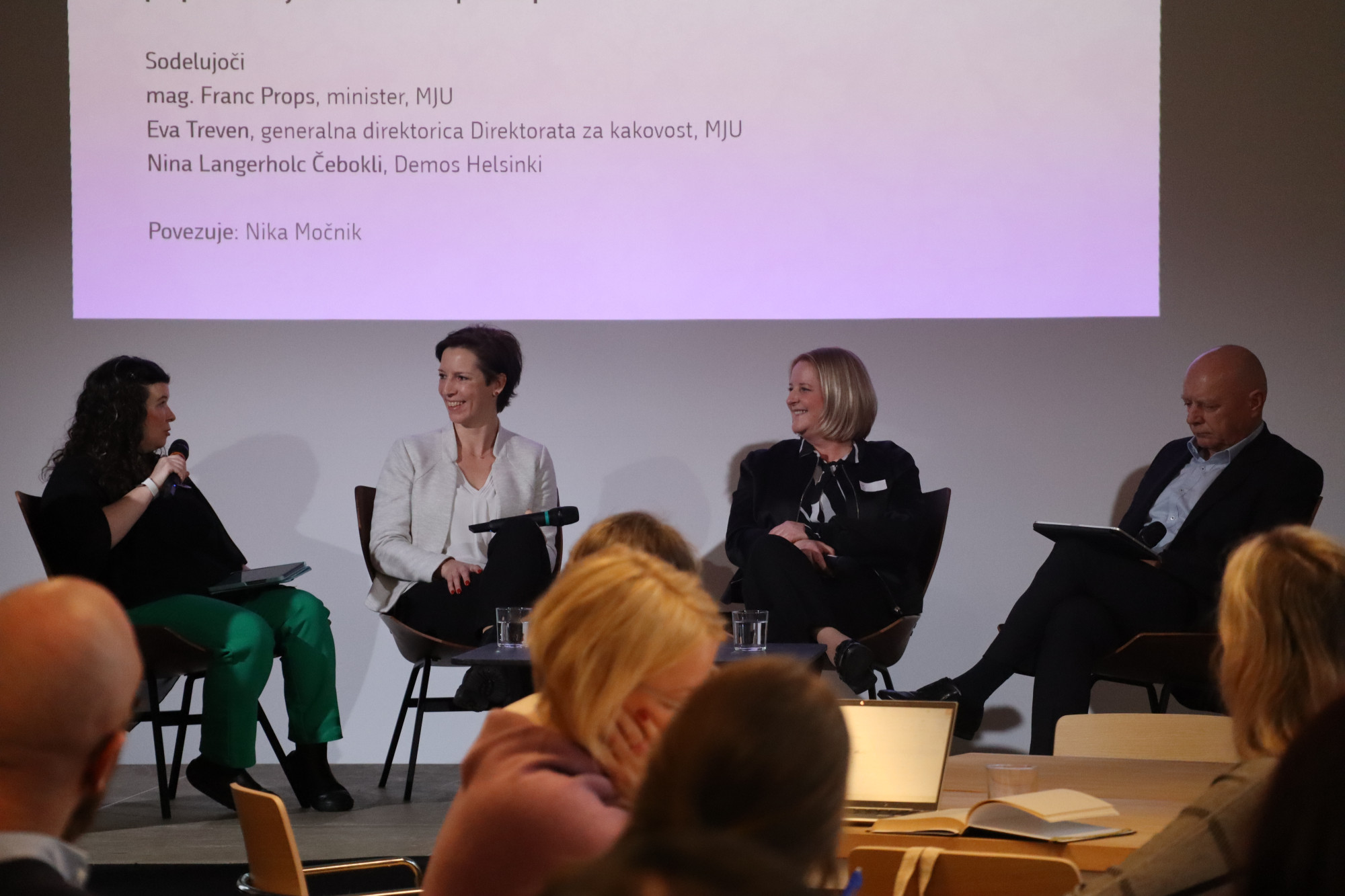 V uvodnem delu konference so sodelovali (z leve) minister mag. Franc Props, generalna direktorica Eva Treven in Nina Langerholc Čebokli iz organizacije Demos Helsinki. | Avtor: Ministrstvo za javno upravo