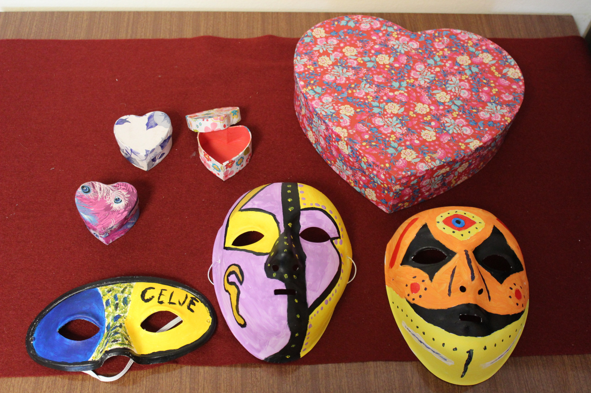 Delavnica je bila tematsko obarvana s pustnim časom in valentinovim. Pust kot tradicionalno obdobje v slovenskem prostoru zaznamujejo šeme, maske in običaji, povezani z odganjanjem zime ter pričakovanjem pomladi. Udeleženci so v tem duhu barvali pustne maske z akrilnimi barvami ter jih oblikovali po lastnih zamislih. Pri delu so uporabljali različne barvne kombinacije in vzorce ter tako ustvarili raznolike in izvirne izdelke.