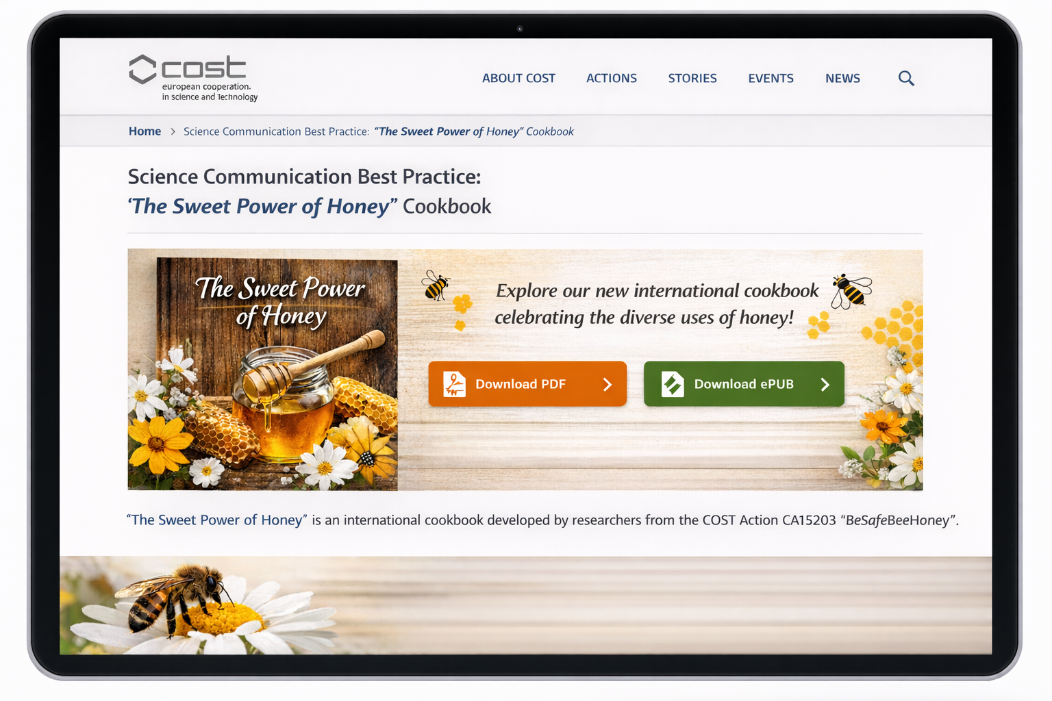 Kuharska knjiga Sladka moč medu z recepti od predjedi do sladic in pijač je dostopna na spletni strani Evropske organizacije za sodelovanje v znanosti in tehnologiji COST, ali pa neposredno na tej povezavi.