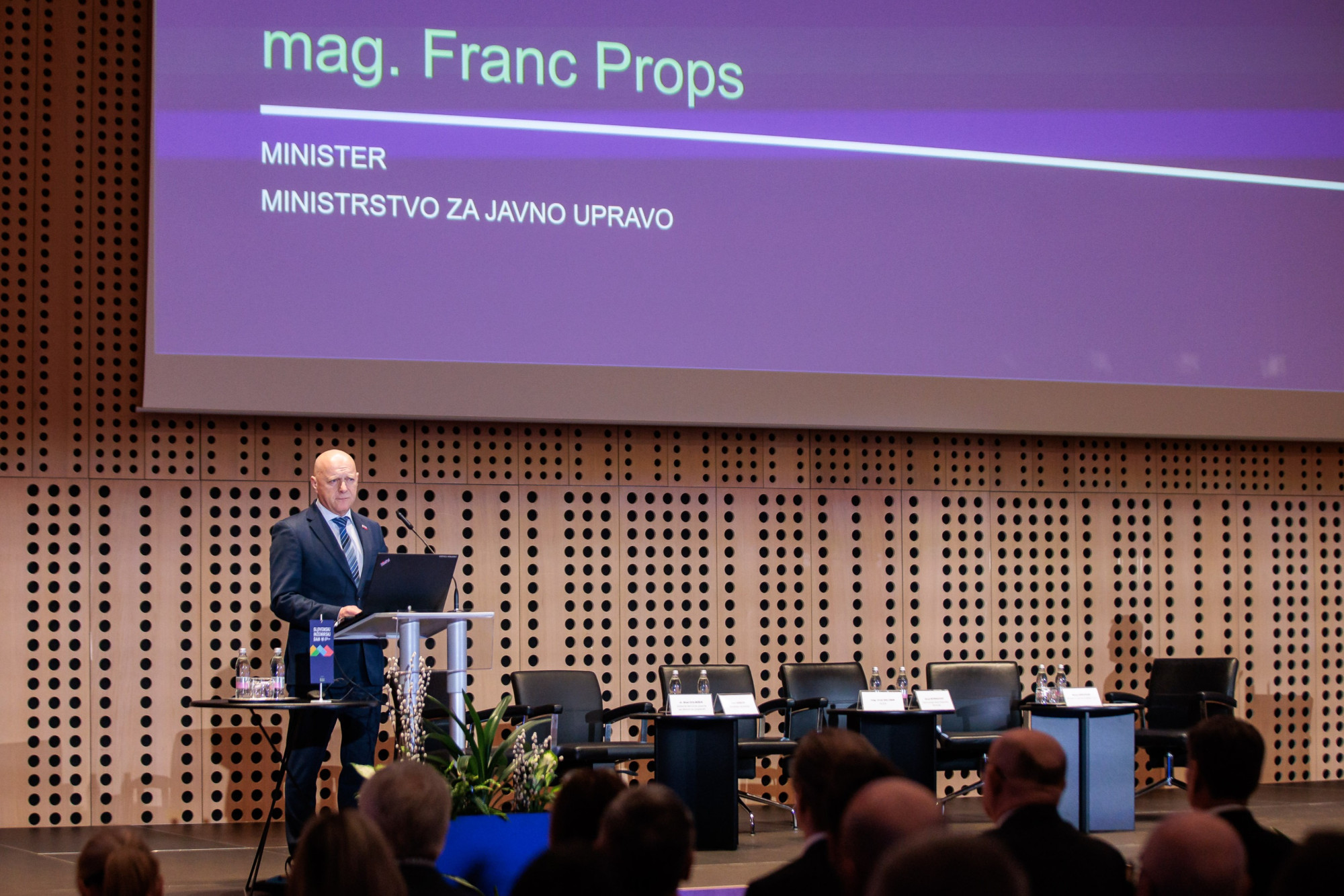 Minister mag. Franc Props je v uvodnem nagovoru izpostavil ključno vlogo inženirjev pri zagotavljanju zanesljive infrastrukture in delujočih sistemov, ki omogočajo učinkovito delovanje države. | Avtor: Inženirska zbornica Slovenije