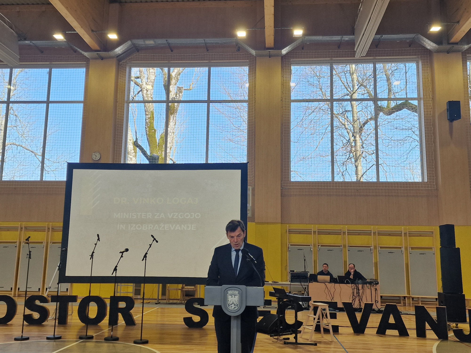 Minister na otvoritvi nove športne dvorane Srednje, gozdarske, lesne in zdravstvene šole Postojna
