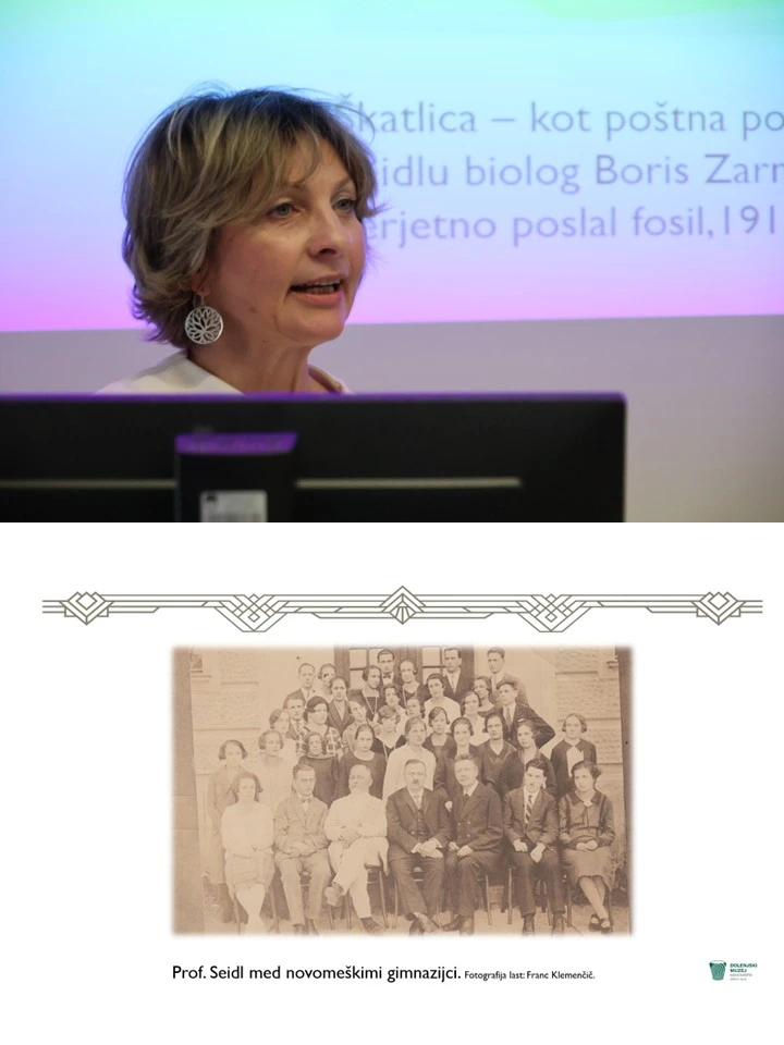 Kustosinja Dolenjskega muzeja ga. Marjeta Bregar je predstavila biografijo cenjenega rojaka. Rojen je bil 10. marca 1856 v Novem mestu, kjer je 1. decembra 1942 tudi umrl. Po gimnaziji v Novem mestu je na Univerzi v Gradcu študiral prirodopis, matematiko in fiziko (1874–1880), nato je poučeval v Krškem, kjer je ustanovil prirodopisni kabinet, in dolgo let deloval kot profesor na realki v Gorici (1887–1915). Po upokojitvi se je vrnil v Novo mesto. Bil je dopisni član Jugoslovanske akademije znanosti in umetnosti Zagreb, svetnik dunajske vlade in od leta 1940 dopisni član takrat ustanovljene Akademije znanosti in umetnosti v Ljubljani (današnja SAZU). Z redkimi arhivskimi fotografijami Seidla in ter njegovih osebnih predmetov je predstavila detajle, ki jih zgodovinski zapisi prezrejo.