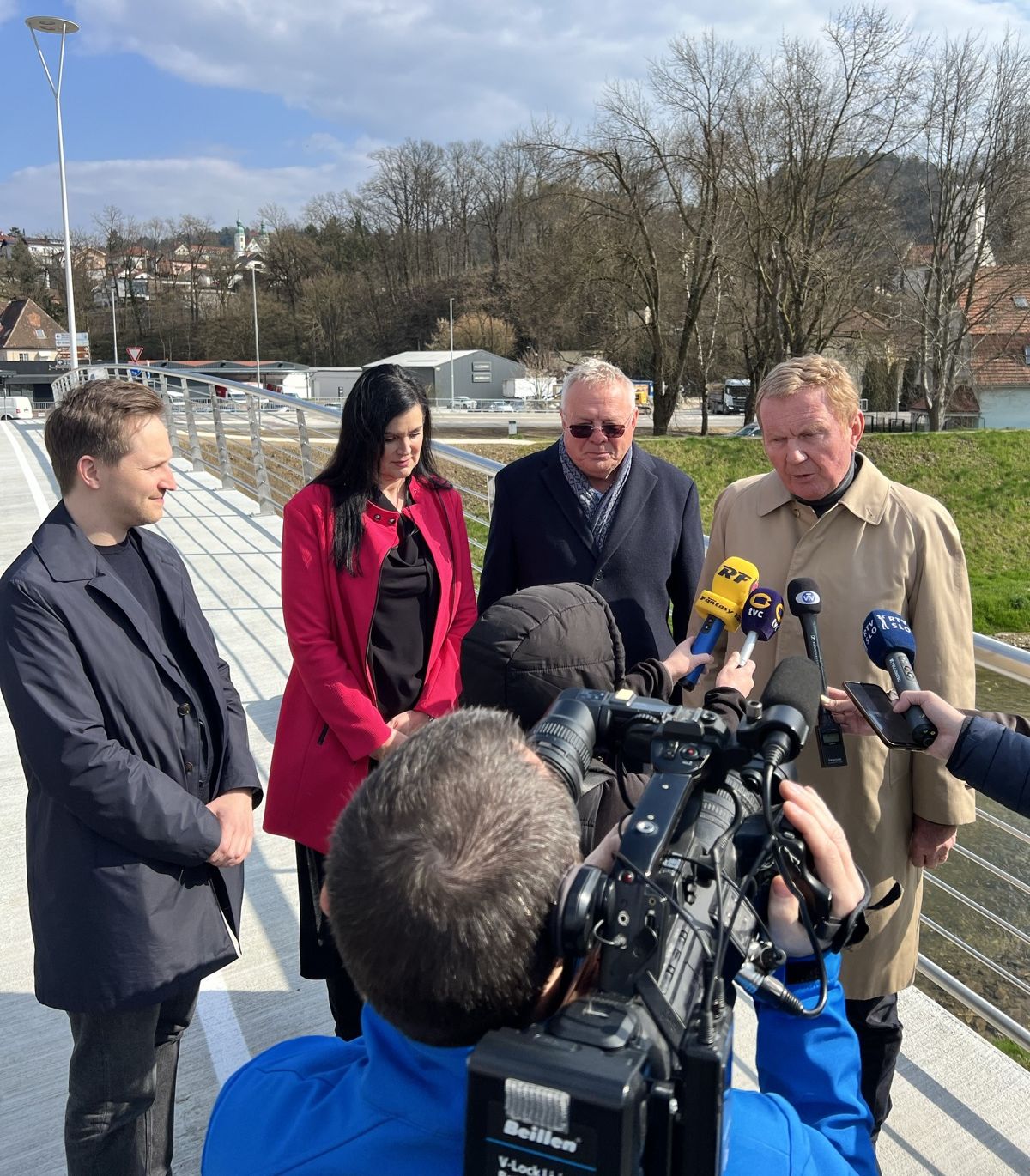 Minister Jože Novak in državni sekretar mag. Miran Gajšek sta si v Celju v spremstvu župana Mestne občine Celje Matije Kovača ogledala novi most pri Zgodovinskem arhivu Celje. | Avtor: MNVP