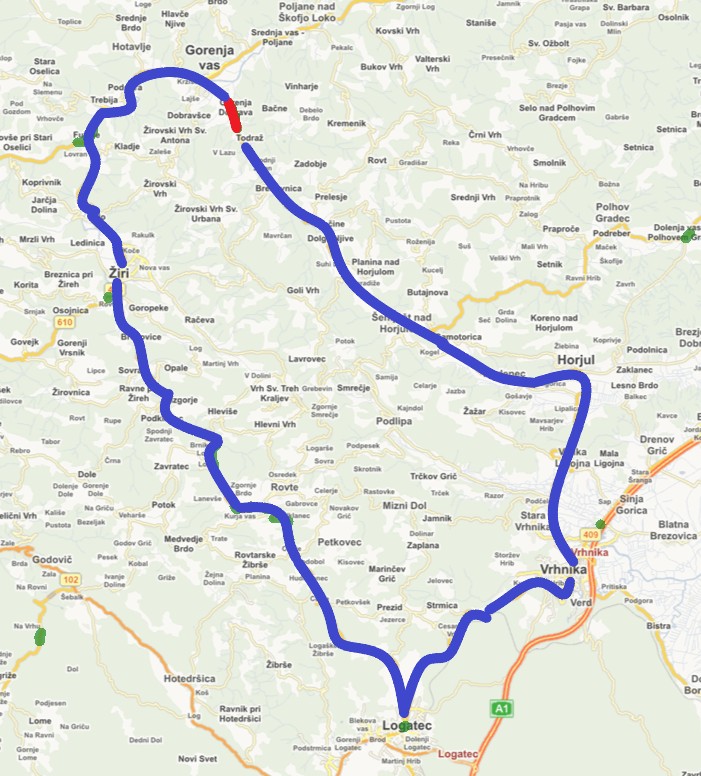 V času popolne zapore bo obvoz potekal na relaciji Gorenja vas–Trebija–Žiri–Logatec–Vrhnika–Horjul–Lučine–Todraž in obratno.