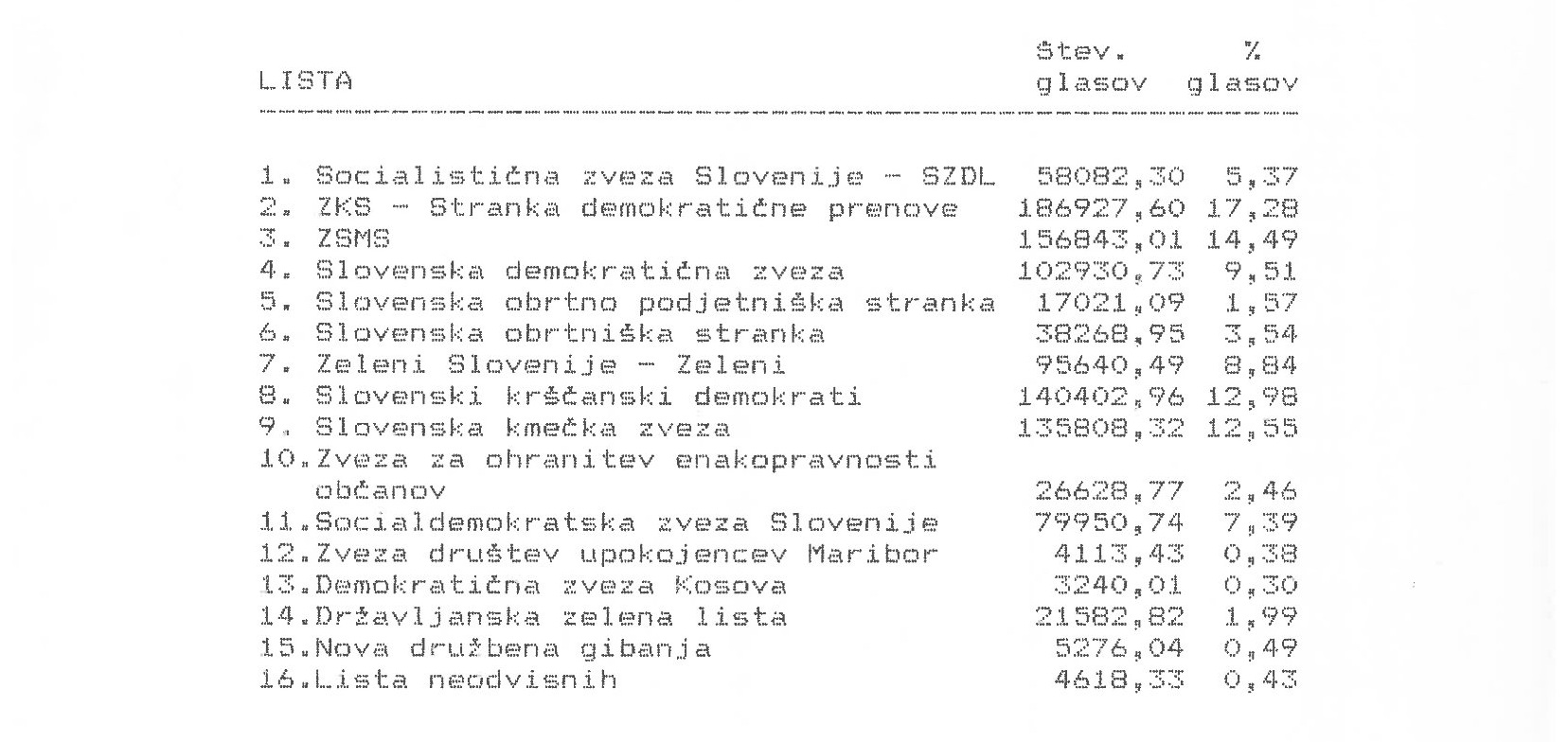 Rezultati prvih demokratičnih volitev v Sloveniji