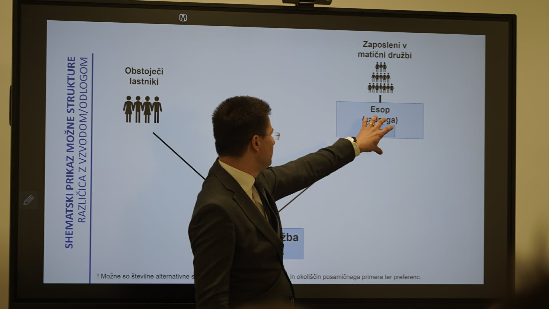 Možnosti za prenos lastništva na zaposlene ponuja nov Zakon o lastniški zadrugi delavcev. Tilen Božič iz Inštituta za ekonomsko demokracijo je v svoji predstavitvi celovito razdelal slovenski model ESOP in njegovo umeščenost v Zakon o lastniški zadrugi delavcev. Mag. Leja Drofenik Štibelj, vodja Službe za ekonomsko demokracijo na Ministrstvu za solidarno prihodnost, pa je predstavila ključne lastnosti zakona. Predavatelja sta udeležencem podala odgovore na številna vprašanja glede davčnih spodbud, načina financiranja odkupov ter razlik med novim zakonom in klasično udeležbo delavcev pri dobičku.