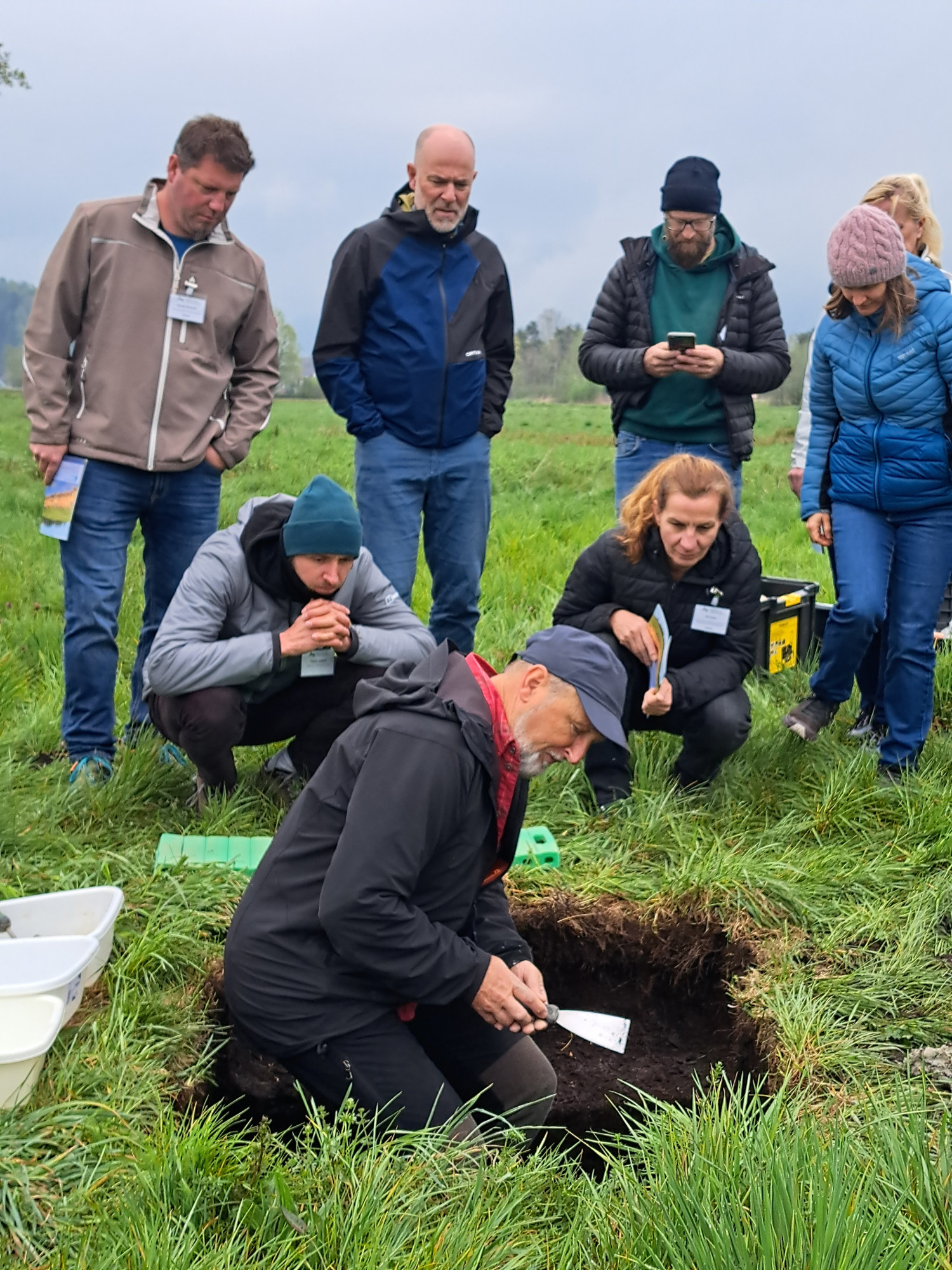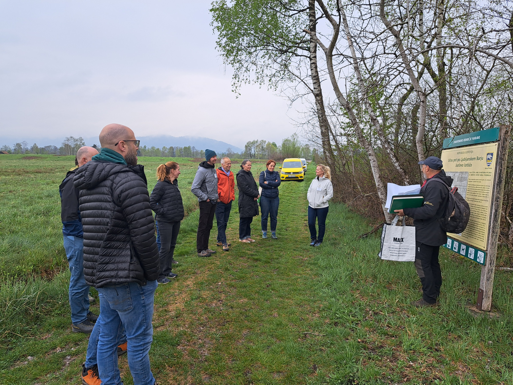 Prvi dan srečanja je bil namenjen usklajevanju izvajanja rednih nalog in aktivnosti, ki izhajajo iz mandata delovne skupine za obdobje 2025 – 2026. Po zaključku sestanka je sledila strokovna ekskurzija, na Ljubljansko barje, ki jo je vodil prof. dr. Marko Zupan z Biotehniške fakultete, Oddelek za agronomijo, Katedra za pedologijo in varstvo okolja. Predstavil je šotna tla in Jurčevo šotišče, eno redkih območij na Barju, kjer je ohranjen ostanek visokega barja z značilno vegetacijo. Šota je tu nastajala skozi tisočletja z nalaganjem organskih snovi v razmerah brez kisika, pri čemer nastaja pomemben naravni filter. Šotna tla namreč skupaj z mikroorganizmi in močvirskimi rastlinami delujejo kot naravni biofiltri, ki zadržujejo in razgrajujejo škodljive snovi ter tako prispevajo k varovanju podzemne vode – pomembnega vira pitne vode na tem območju. Udeleženci so si lahko ogledali tudi pedološki profil tal, ki smo ga izvedli z namenom, da so udeleženci dobili bolj detajlni vpogled v zgradbo šotnih tal ter gline »polžarice«, ki predstavlja podlago šoti. Na terenskem ogledu je dr. Nika Debeljak, z Zavoda za varstvo narave, predstavila prizadevanja Slovenije za renaturacijo sladkovodnih mokrišč. Nekaj jih je bilo izvedenih v projektu WETMAN, med njimi na šotiščih na območju Pohorja.