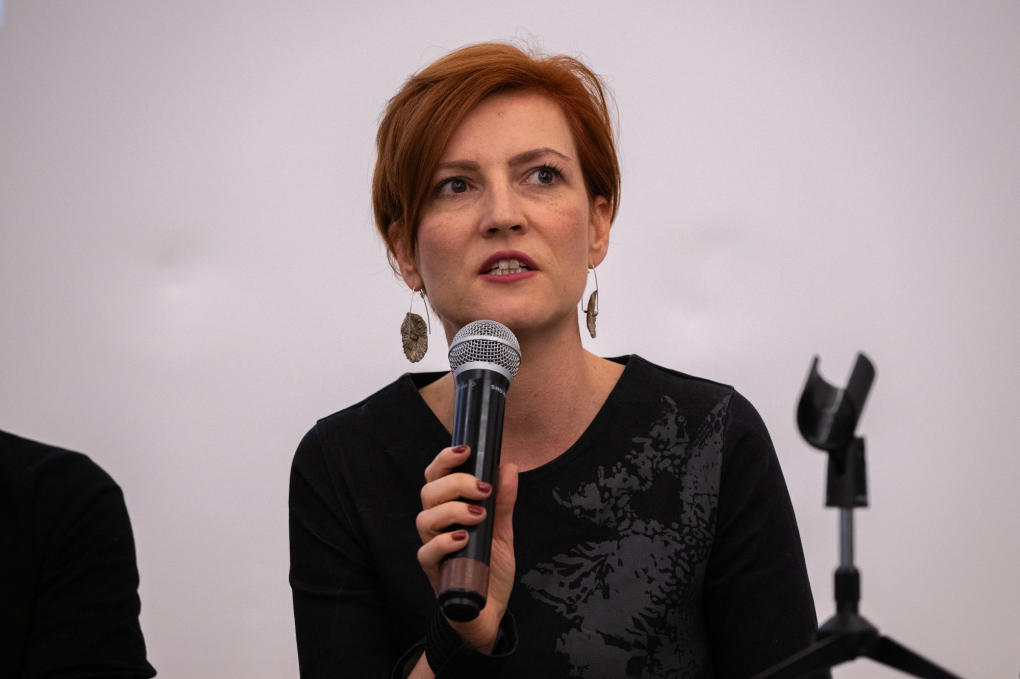 Ministrica dr. Asta Vrečko na predstavitvi paviljona Republike Slovenije na 61. umetnostni razstavi
