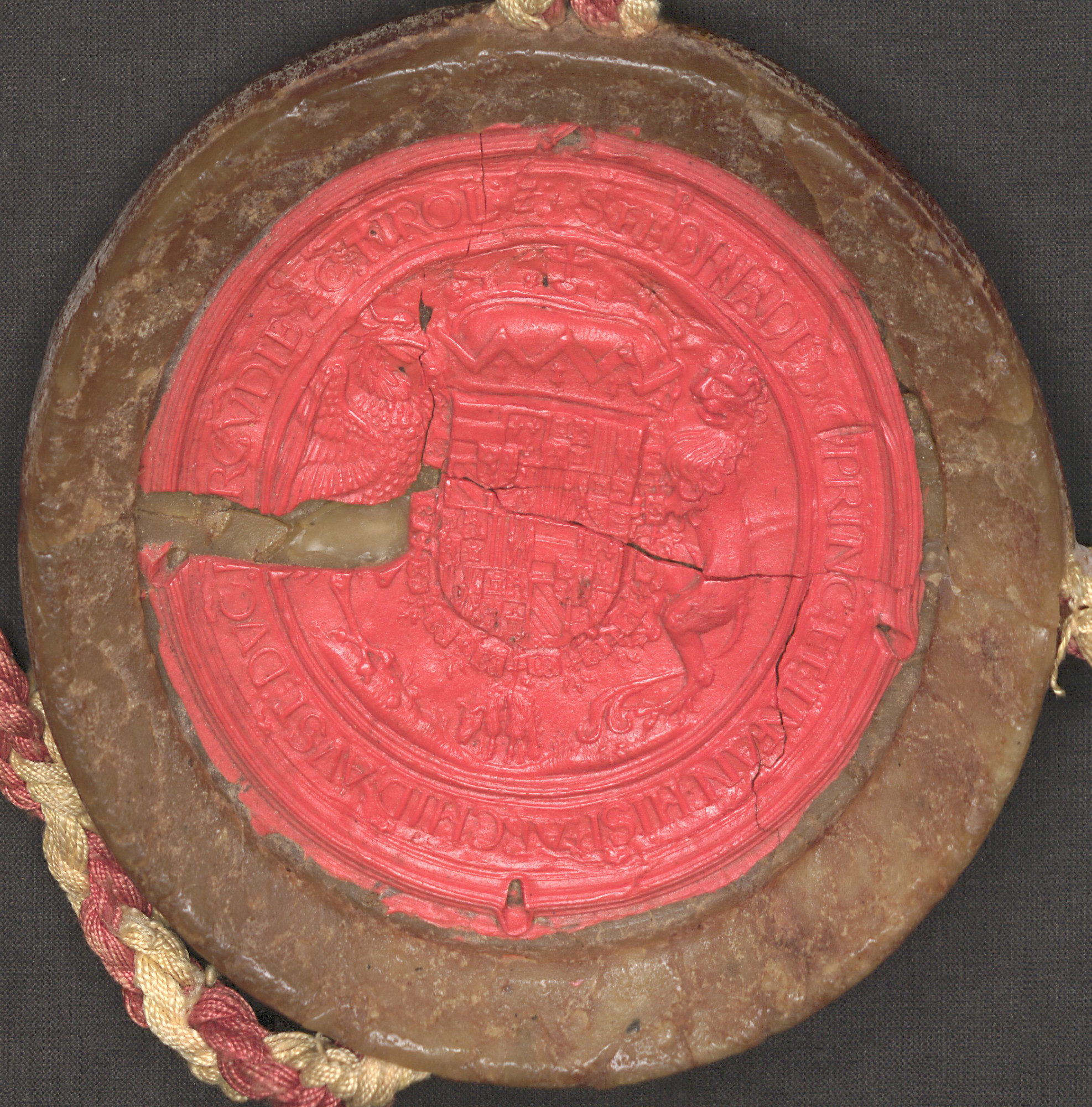 Listina avstrijskega nadvojvode Ferdinanda I. Habsburškega s pečatom, s katero potrjuje privilegije in svoboščine kartuzije Pleterje. | Avtor: Arhiv Republike Slovenije