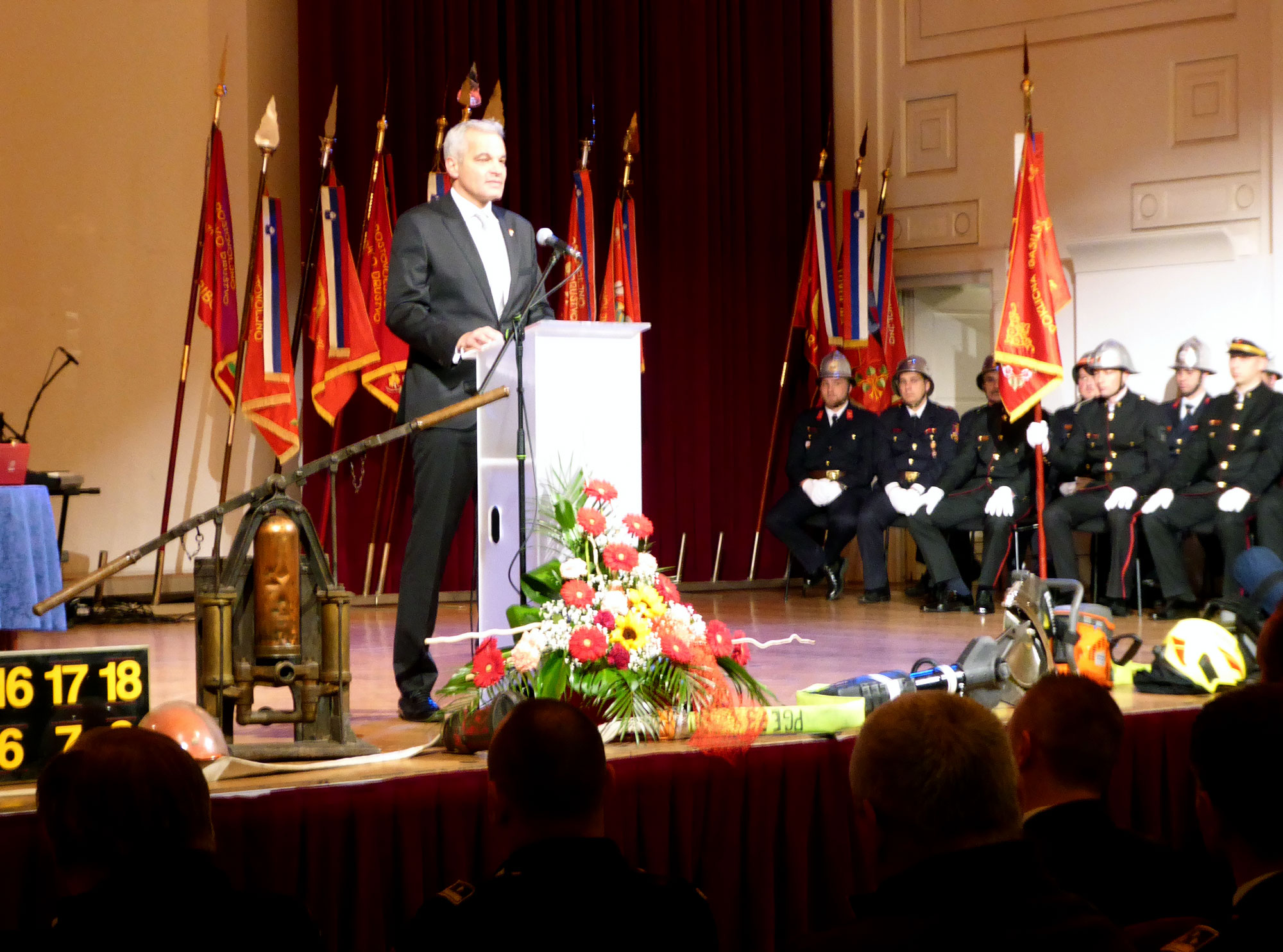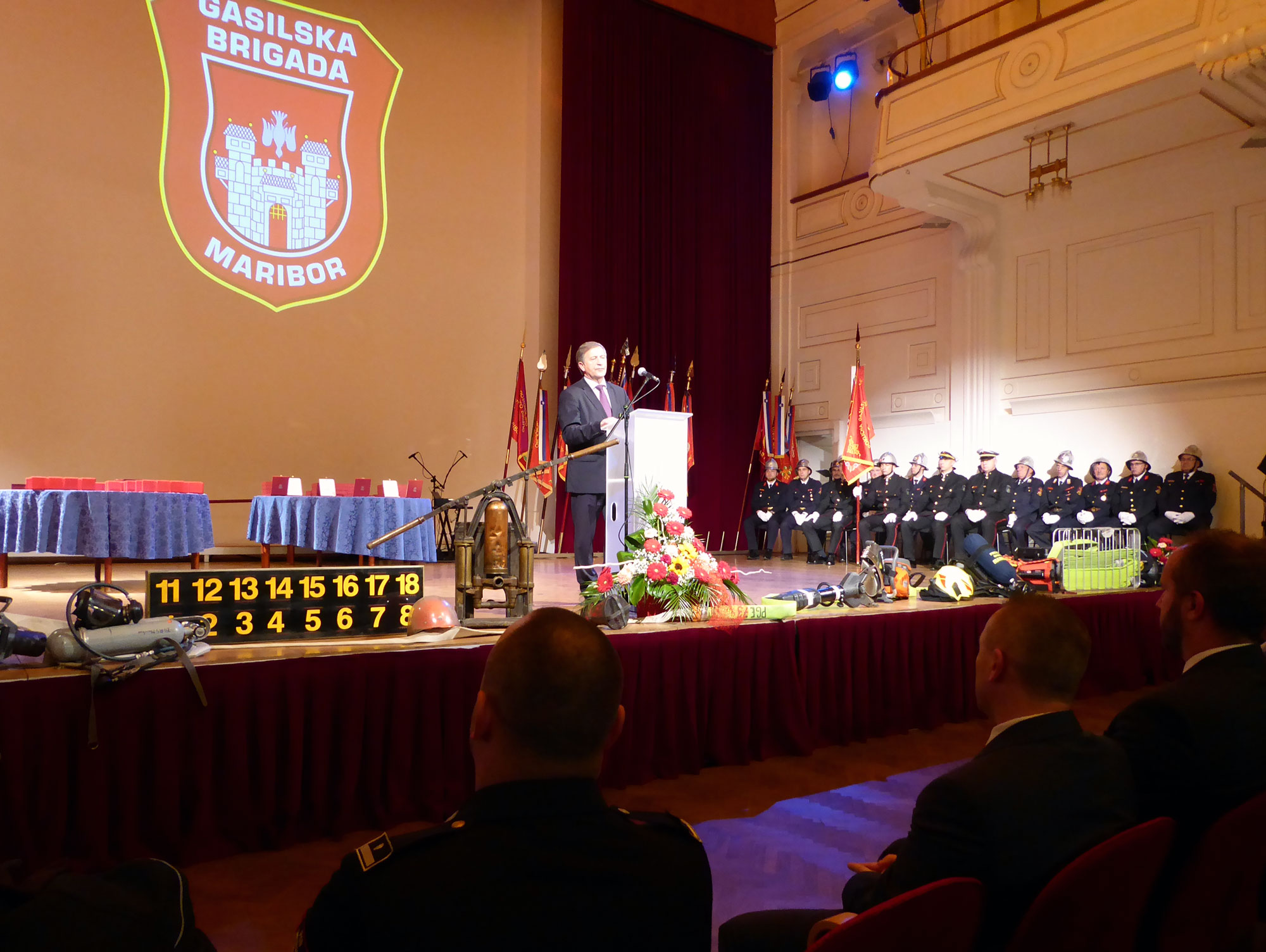 Minister za obrambo Karl Erjavec je dejal, da so bili začetki današnje Gasilske brigade Maribor zelo skromni, saj je v enoti sprva delovalo le devet gasilcev. Danes je to enota, ki, kot je povedal minister, opravlja številne in kompleksne naloge, za katera so potrebna raznovrstna znanja in sodobna oprema. GB Maribor ima tako eno kot drugo in je lahko zgled domačim in tujim enotam. Pohvalil je dobro sodelovanje zavoda s prostovoljnimi gasilskimi društvi in z Upravo Republike Slovenije za zaščito in reševanje ter se ob tej priložnosti zahvalil županom Maribora in sosednjih občin, ki podpirajo gasilski poklic. Poudaril je, da je gasilstvo, ki je sestavni del sistema zaščite, reševanja in pomoči, eden od stebrov naše državnosti, saj so prav gasilci skozi zgodovino negovali slovenski jezik in kulturo. Izrazil je zadovoljstvo, da je ministrstvo sodelovalo pri nakupu nove gasilske lestve ter da proračunski predlog za naslednje leto predvideva zvišanje sredstev za področje zaščite in reševanja. Minister je spregovoril tudi o predlogih nove zakonodaje s področja gasilstva in širše, pri čemer je izpostavil predlog posodobljenega zakona o gasilstvu, ki je po javni predstavitvi v fazi usklajevanja s predstavniki krovnih gasilskih organizacij, s področja poklicnega gasilstva pa ureditev statusa gasilskih enot v gospodarskih družbah, vključno z izvajanjem požarne straže.