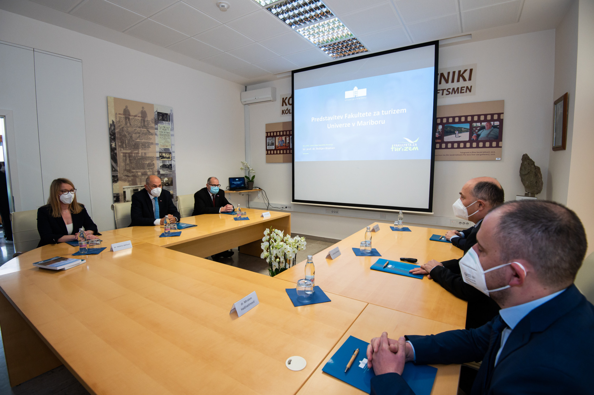 Predsednik vlade Janez Janša se je še pred jutranjim delovnim posvetom sešel z županom Občine Brežice Ivanom Molanom, s katerim sta spregovorila predvsem o razvojnih priložnostih brežiške občine. Po delovnem posvetu je skupaj s Heleno Jaklitsch, ministrico za Slovence v zamejstvu in po svetu, ter državnim sekretarjem v kabinetu predsednika vlade Marjanom Dolinškom obiskal Fakulteto za turizem Univerze v Mariboru v Brežicah, kjer se je sešel z vodstvom fakultete. Na fakulteti so po srečanju izvedli tudi slovesni podpis Pisma o nameri o investiciji za potrebe Fakultete za turizem Univerze v Mariboru, ki so ga podpisali dekan Fakultete za turizem Univerze v Mariboru dr. Boštjan Brumen, rektor Univerze v Mariboru dr. Zdravko Kačič ter državni sekretar za področje izobraževanja in športa v kabinetu predsednika vlade Marjan Dolinšek. Predsednik vlade Janez Janša je prisostvoval na tem dogodku. Pismo o nameri je bilo podpisano z namenom izražanja skupne podpore in prizadevanj, da se zagotovi ustrezno učno in delovno okolje Univerzi v Mariboru, Fakulteti za turizem, zagotovila pa se bo tudi širša promocija slovenskega gospodarstva in turizma.