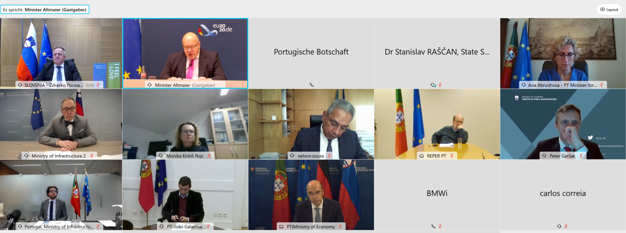 Predsedujoči trio je izmenjal mnenja in stališča glede podedovanih dosjejev nemškega predsedstva, ki jih bo prevzela Portugalska oziroma v drugi polovici leta 2021 Slovenija. Gospodarski ministri predsedujočega tria so se strinjali, da bo zaradi pojava pandemije Covid-19 predvidoma treba prilagoditi program portugalskega predsedstva. Slednje zadeva vse vsebinske dosjeje v sestavah Sveta Evropske unije, ki spadajo pod pristojnost nemškega ministrstva za gospodarstvo in energijo in sicer notranji trg in industrija, trgovina, energija, telekomunikacije oziroma digitalna politika ter kohezija.