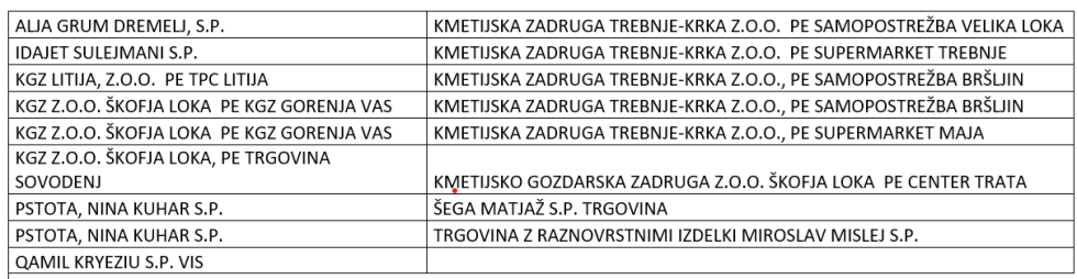 Navedeni v tabeli na koncu sporočila