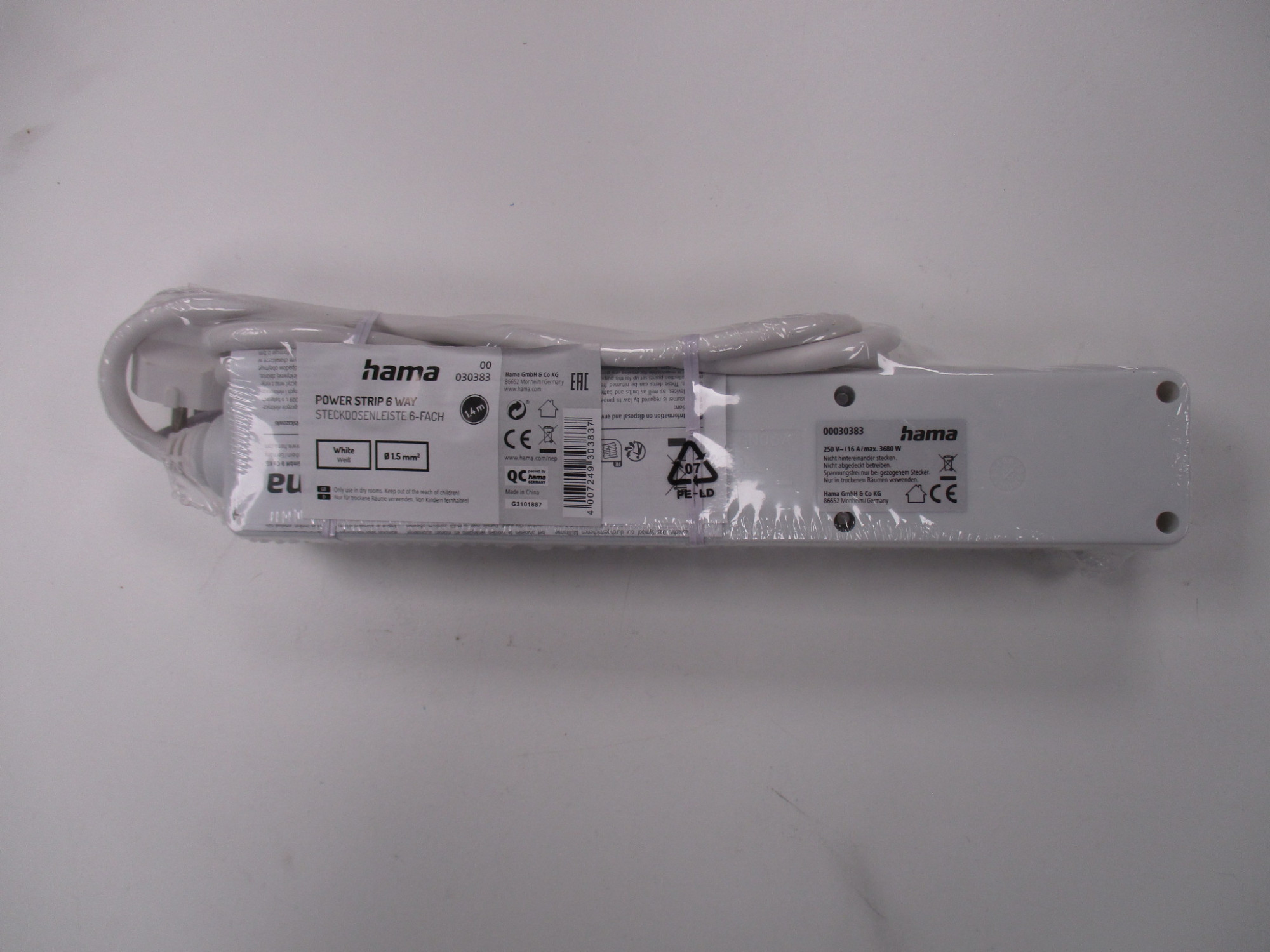 Električni podaljšek s 6 vtičnicami Hama - beli.