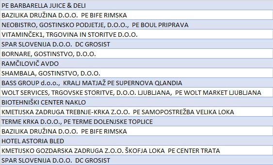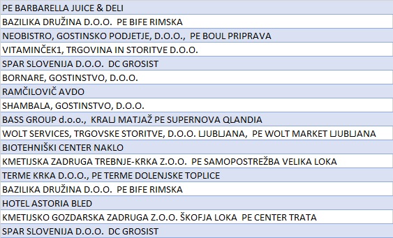 V tabeli na koncu obvestila