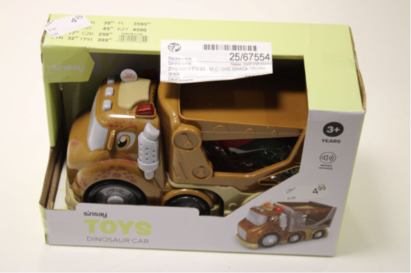 Zdravstveni inšpektorat je v okviru uradnega nadzora ugotovil, da igrača avto dinozaver MLC One Sinsay, ni skladna z določili Uredbe o varnosti igrač.
