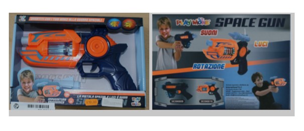 Zdravstveni inšpektorat je v okviru uradnega nadzora ugotovil, da igrača pištola Space gun, Play more, ni skladna z določili Uredbe o varnosti igrač.