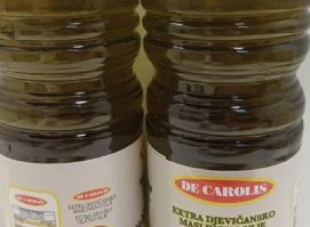 Živilo je varno vendar nepravilno poimenovano kot 'Ekstra deviško oljčno olje'. Oljčno olje sodi v kategorijo 'Deviško oljčno olje'. Potrošniki lahko neskladen lot vrnejo na mesto nakupa.