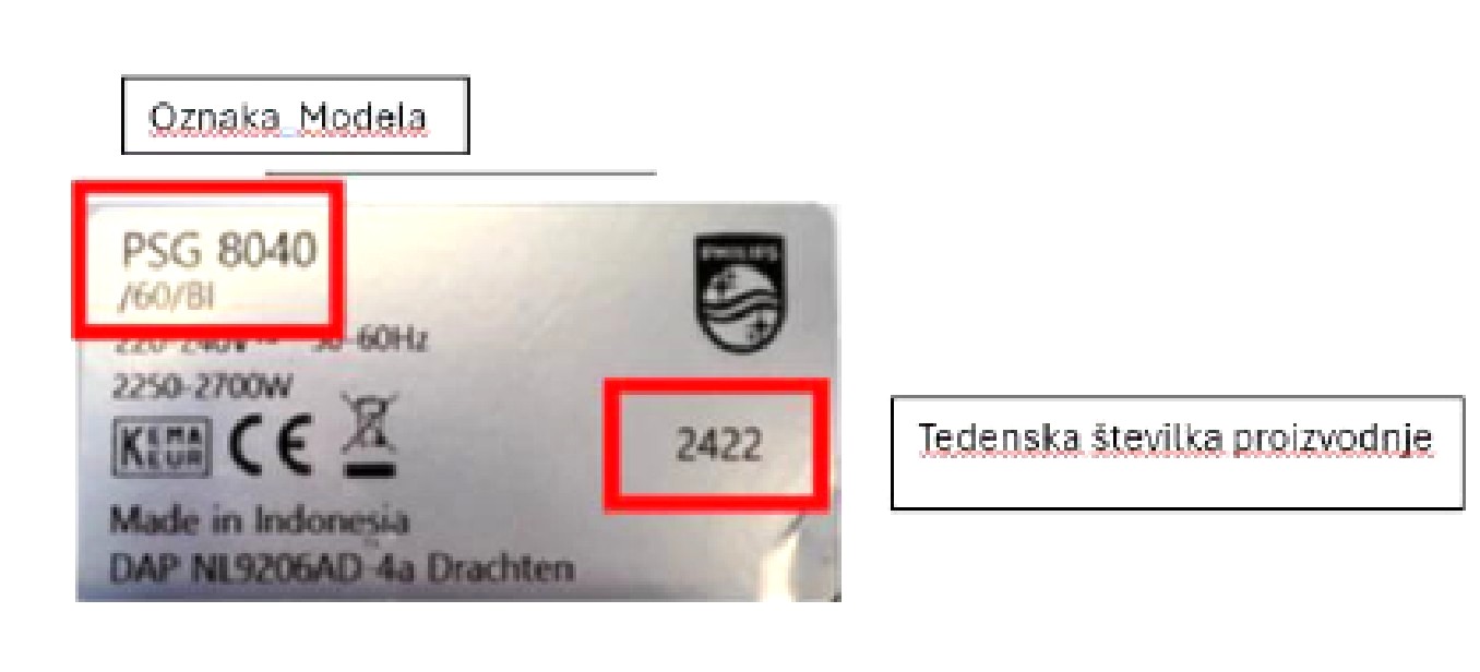 Končni uporabnik naj preveri oznako modela izdelka ter v primeru, ko se oznaka modela ujema z objavljeno, preveri še kodno številko (tedensko številko proizvodnje) na tipski ploščici, ki se nahaja na spodnji strani nepremičnega dela. V primeru, da kodna številka ni v razponu od 2419 do 2441, lahko končni uporabnik izdelek normalno uporablja.