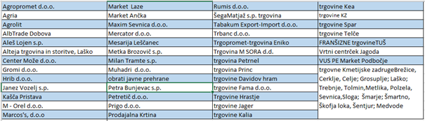 Prejemniki živil in lotov umaknjenih na podlagi previdnostnega principa so navedeni v tabeli na koncu sporočila