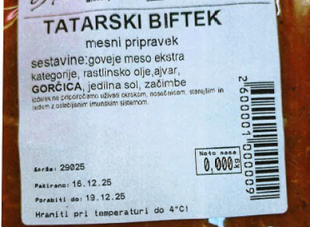 Potrošnikom svetujemo, da živila ne uživajo in ga naj zavržejo ali vrnejo na mesto nakupa.
