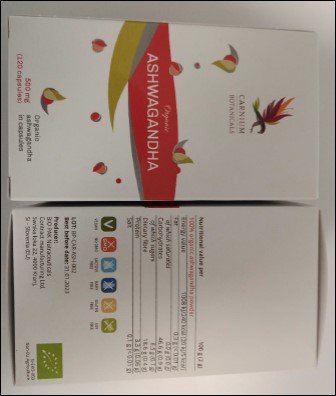 Zdravstveni inšpektorat RS je v okviru letnega programa vzorčenja odvzel vzorec prehranskega dopolnila Ekološka ashwagandha v kapsulah. Pri analizi je bila v izdelku ugotovljena prisotnost bakterije Salmonella spp.. Proizvajalec izdelka zato izvaja prostovoljni umik/odpoklic.