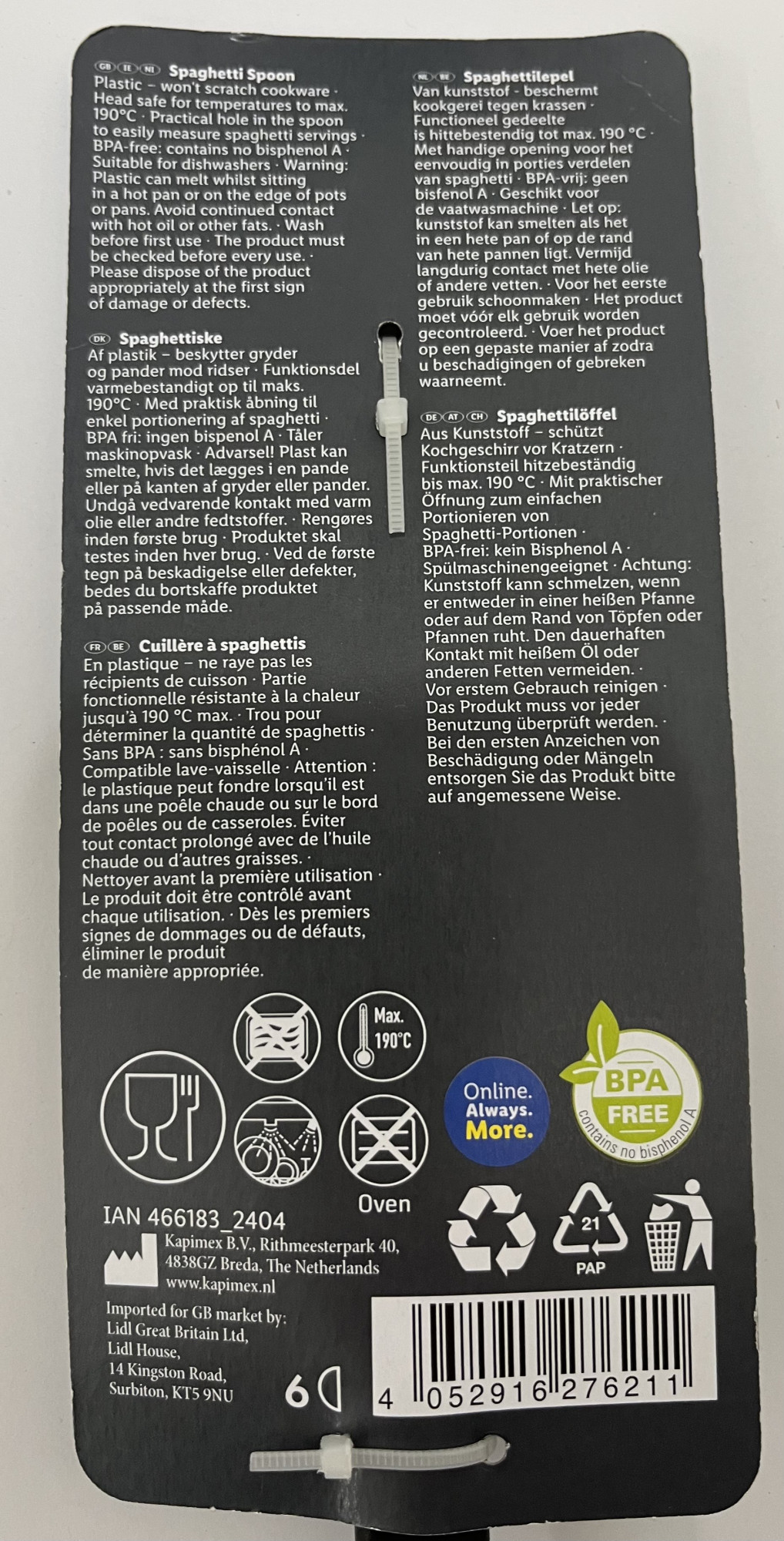 Zdravstveni inšpektorat RS je od podjetja Lidl Slovenija prejel obvestilo o odpoklicu žlice za špagete iz črne plastike, ki ga izvaja na podlagi obvestila, prejetega s strani EU sistema hitrega obveščanja za živilo in krmo (RASFF).